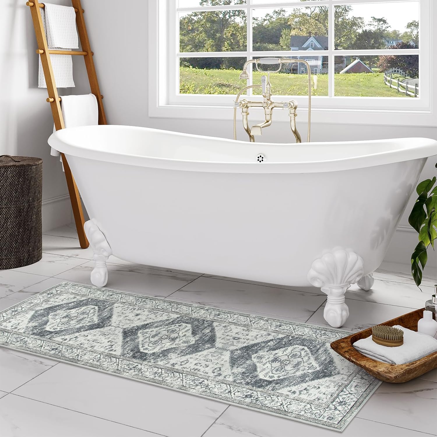 Lahome Boho Small Rug - 2x5 Non-Slip Washable Laundry Room Rug, Lightweight Hallway Rugs Indoor, Oriental Distressed Print Carpet Runners for Bedroom Kitchen Bathroom