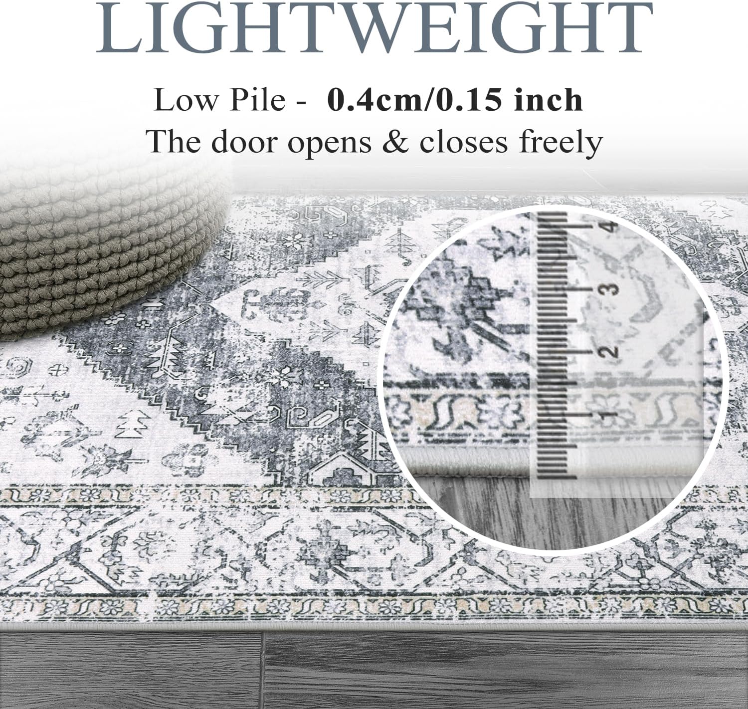 - Functional Lightweight Rug - Lahome ultra-thin rugs are made with everyday use in mind and high-traffic areas. 0.15 inches thickness allows for convenient placement in hallway, kitchen, entryway and underneath furniture. The door opens and closes freely