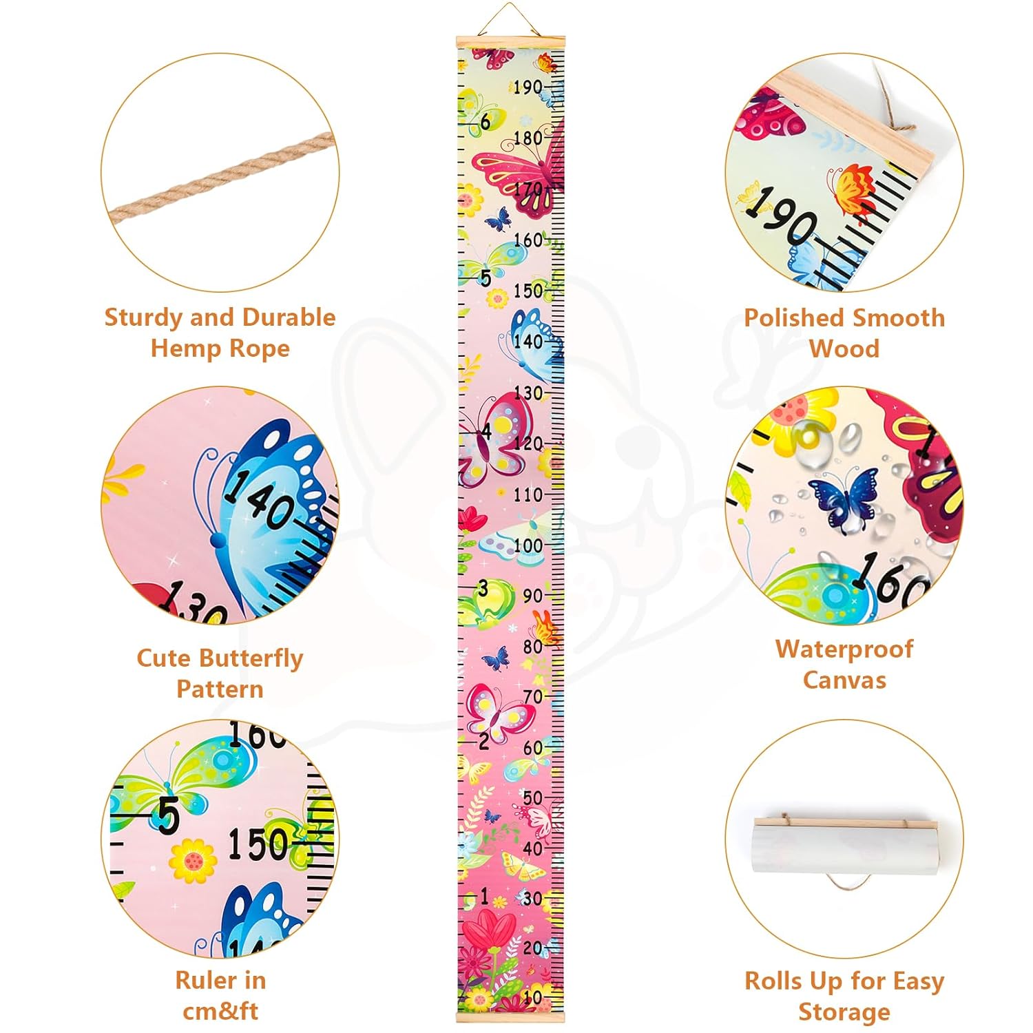 - Butterfly Growth Chart: With every girls favorite unicorn pattern on the growth chart, it is not only a lovely wall decor, but also is very meaningful and enjoyable for every parents and kids to record and preserve precious memories from baby to adult.