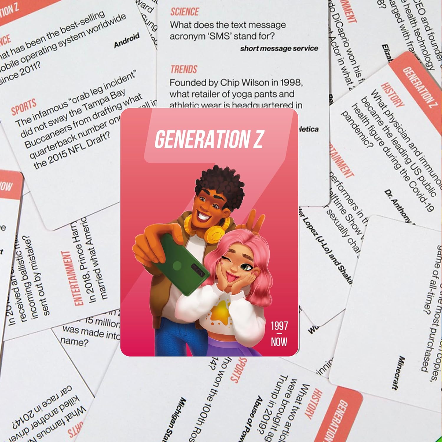 - GAMES FOR ADULTS: one OK Boomer trivia game set includes 550 trivia questions spread across the five generations; Become an instant champion while camping, sleepovers, game nights, family gatherings, summer camp, plane trips, and road trip games