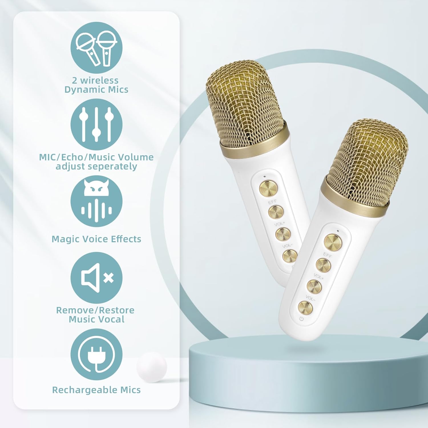 Mini Karaoke Machine for Kids Adult, Portable Bluetooth Karaoke Speaker with 2 Wireless Microphones for Home Party, Great Gifts for Boys and Girls Ages 4, 5, 6, 7, 8,9,10,11, 12+ Years Old