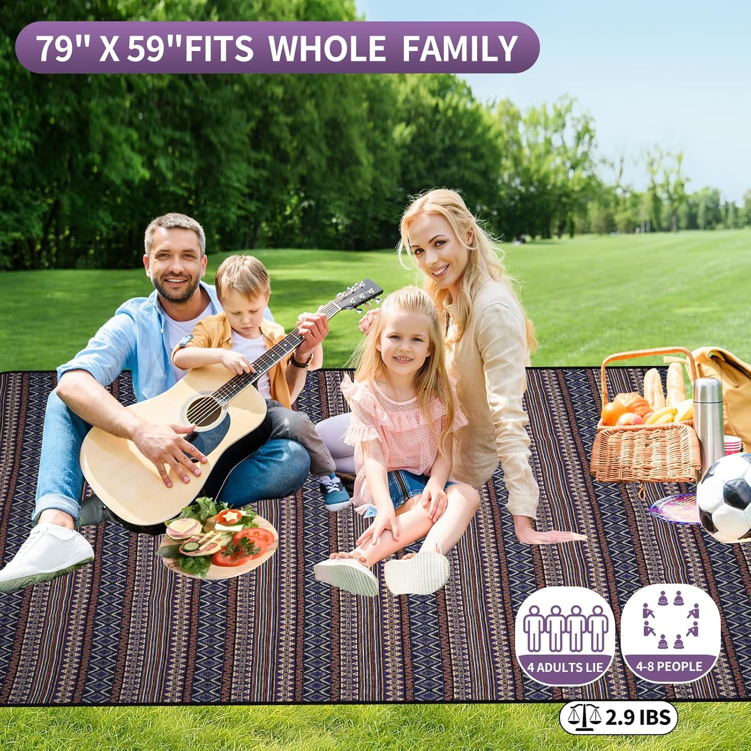 - EXTRA LARGE & FOLDABLE - Unfolded portable picnic blanket is 79 X 59 inches. It easily folds to a compact tote 12 L x 4 W x 4 H inches. Can accommodate 4-8 people to sit on it ideal for your picnic, beach adventure, backyard party, camping, backpacking, or simply to have a clean and comfortable picnic mat for your kids to play on.