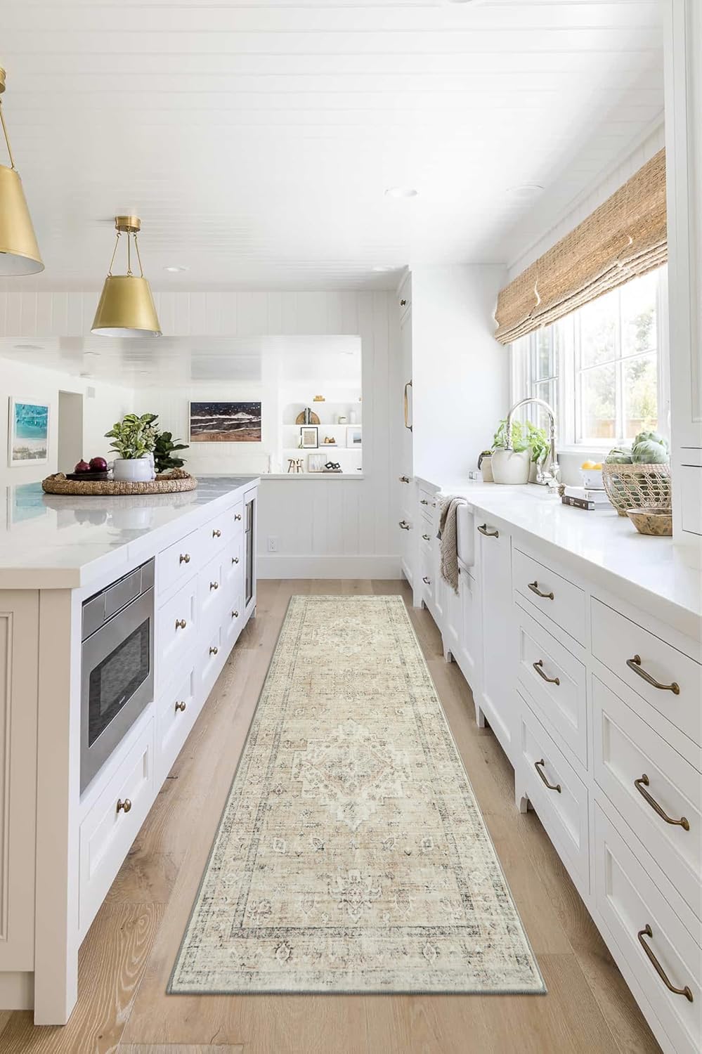 - Vintage Oriental Rug--Let classic and elegance meet in your home!Chic boho and retro hallway runner rug featuring gorgeous patterns printed on soft & cozy short pile for a velvety touch. Neutral tones of rugs create a warm and lively atmosphere.