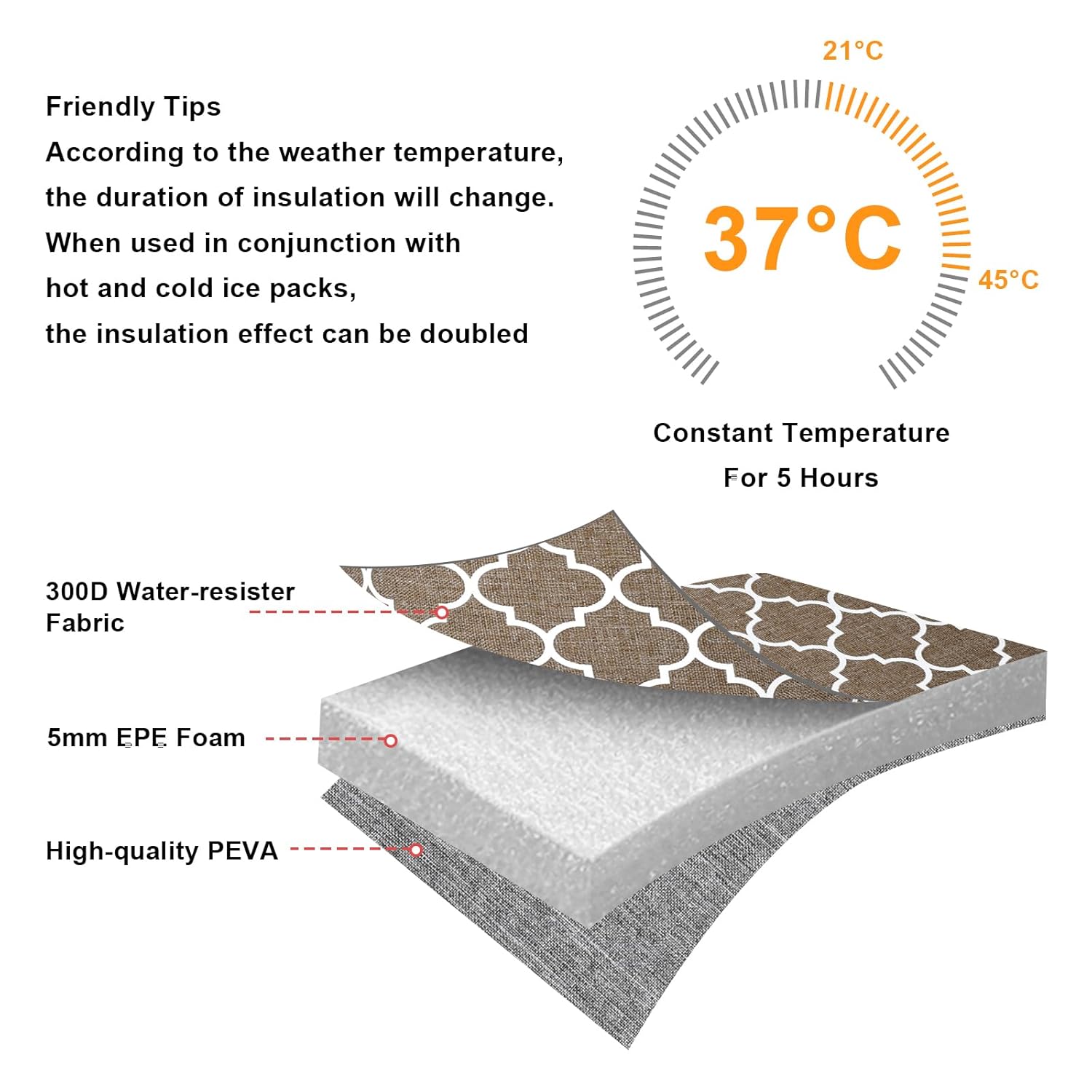 - HIGH QUALITY MATERIALS: This bottle cooler bag is made of high quality water-resistant 300D composite oxford fabric, 8mm extra-thick EPE foam and food-grade PEVA, non-toxic and food safe. Insulated lining can keep bottles cool or warm, it is a perfect breastmilk cooler tote bag for nursing mom.