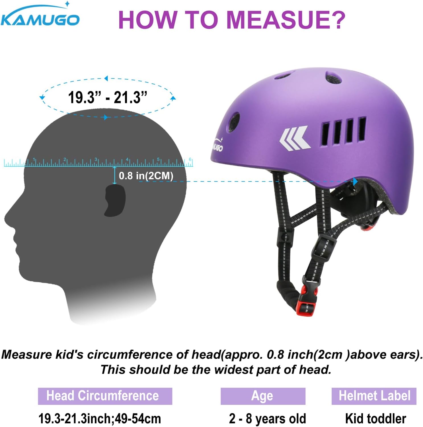 - LIGHTWEIGHT ADJUSTABLE HELMT: Kids bike helmet only weighs 280g, Children helmets have adjustable crank adjustment dial and strap ,and changing the length of the chin strap, maximize the best fit and comfortable wearing, perfectly for boys and girls 2-8 years old. Toddler helmet size: 19.3'-21.3',one kids helmet set can be used for a few years.