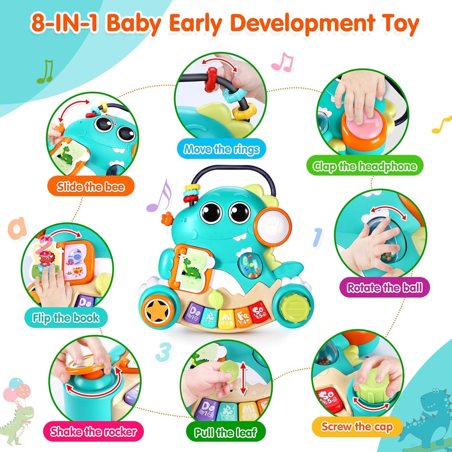 - SO MUCH TO DSICOVER, BABY' S FAVORITE TOYS: Baby toys 12-18 months covers all of the bases for satisfying most babies. There are strings to pull and bead-filled cylinders to roll and keys to play like a piano, slide the bee, the eyes of dino toddler boy toys will roll, and play funny sounds to make your baby laugh. So many options keep your baby occupied for hours . Interactive and playful toys for 1 year old boy, supply baby with healthy entertainment.