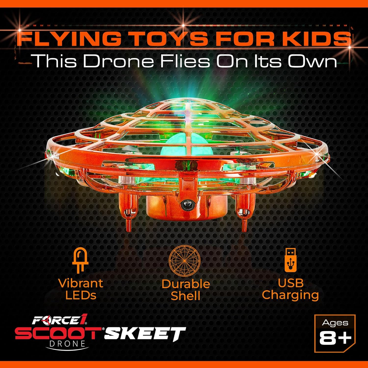 Force1 Scoot Skeet Mini Drone Electronic Shooting Game for Kids (Drone Only)- Hand Drones for Kids Compatible with Scoot Skeet LED Blaster, Electronic Target Game Indoor Flying Ball Drone Toy (Orange)