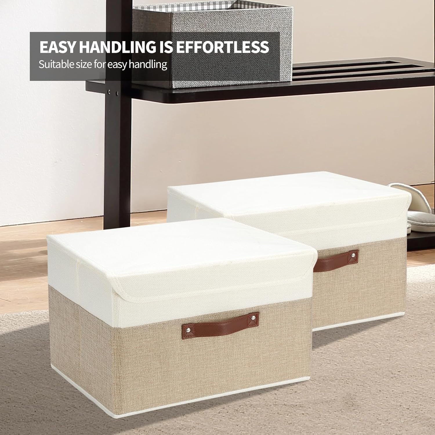 - PREMIUM QUALIT:- This fabric storage bins with lids are made breathable linen fabric with the high quality cardboard on the sides and bottom, The fabric is eco - friendly, with no odor, The inner 3 mm PP board maintains fabric storage box shape and structural integrity.