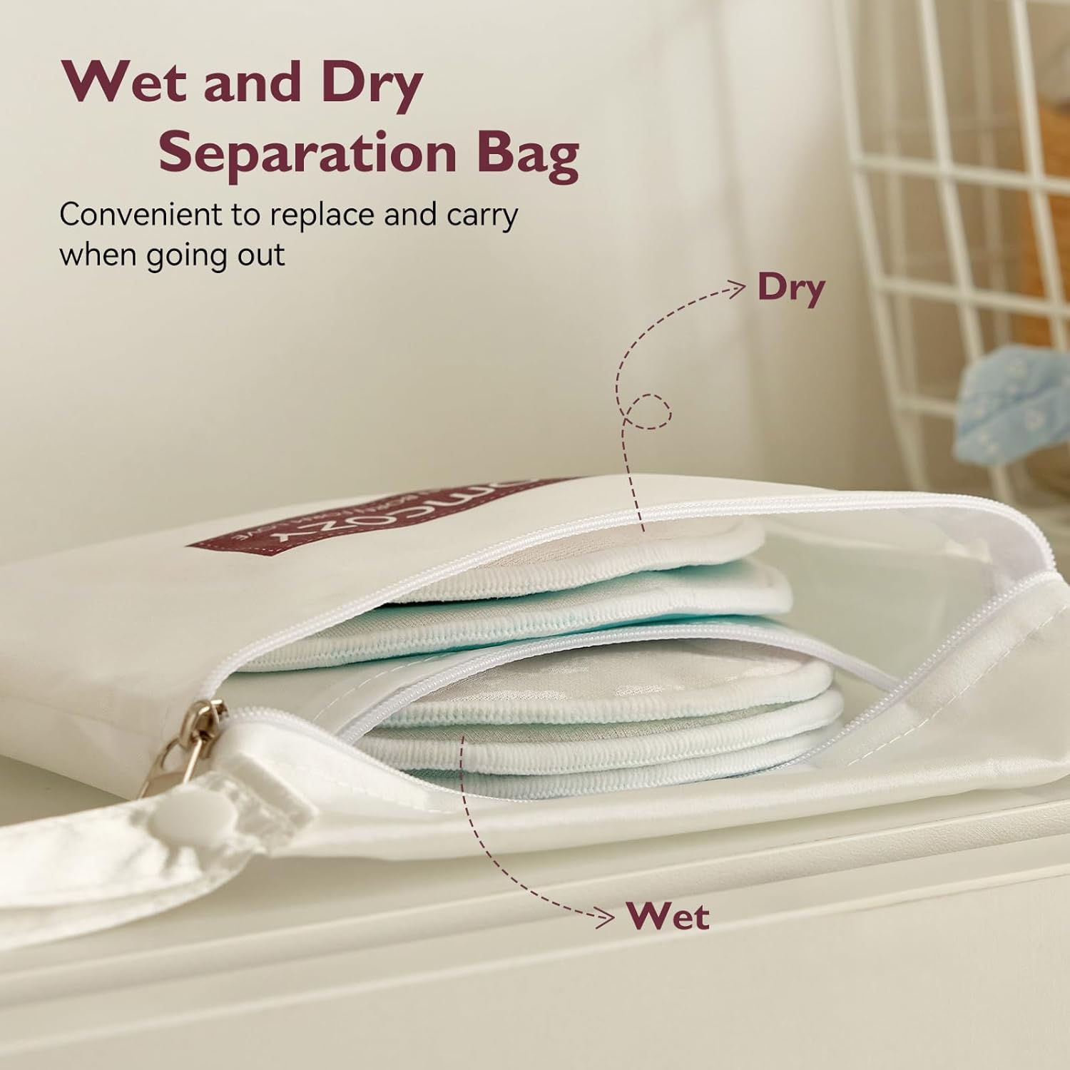 Momcozy Reusable Breast Pads, Innovative Use of Absorbent Fabric & 4 Layers of Super Absorbent Core Washable Nursing Pads, Absorb Quickly and Leak-Proof, 14 Pack + Wet & Dry Separation Bag + Wash Bag