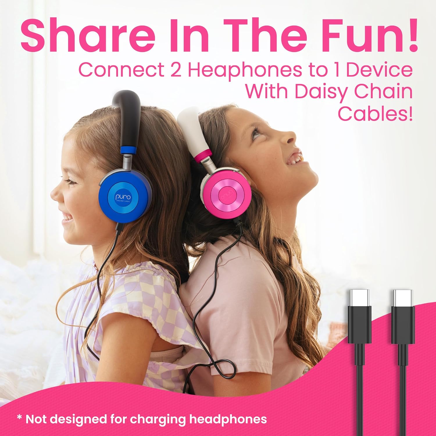 Puro Sound Labs JuniorJam Plus Volume-Limiting Wireless Bluetooth Headphones for Kids, Secure Audio with Adjustable On-Ear Design, 22-Hour Battery, Ideal for Tablets, Smartphones & PCs - Pink