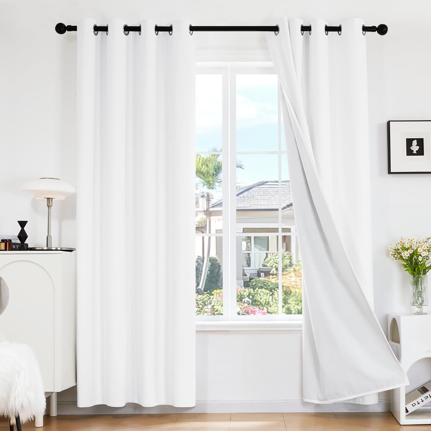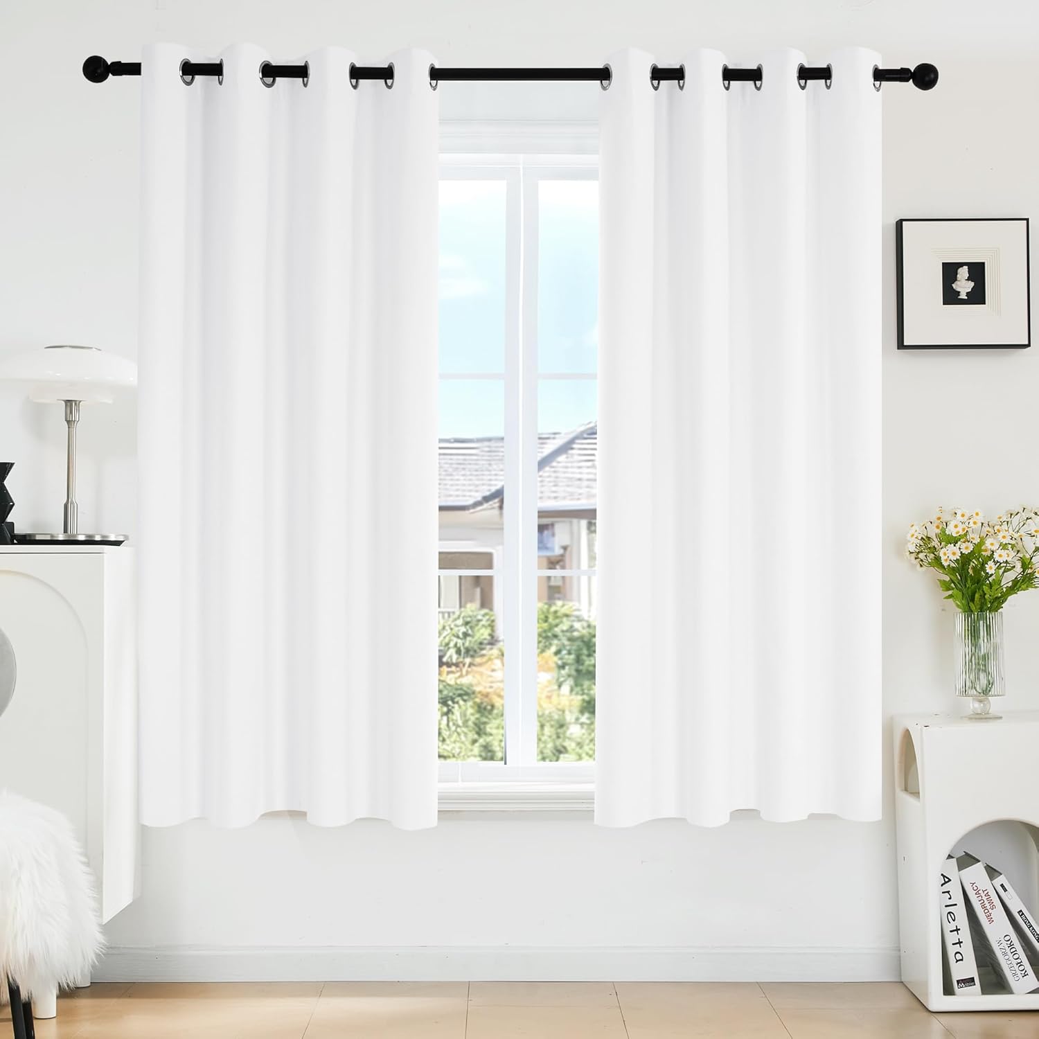 Deconovo 100% Blackout Grommet Curtains – Thermal Insulated, Noise-Reducing, Sustainable & Easy-Care Drapes for Bedroom, Living Room & Office – Oeko-TEX Certified, White 52W x 45L Inch (Set of 2)