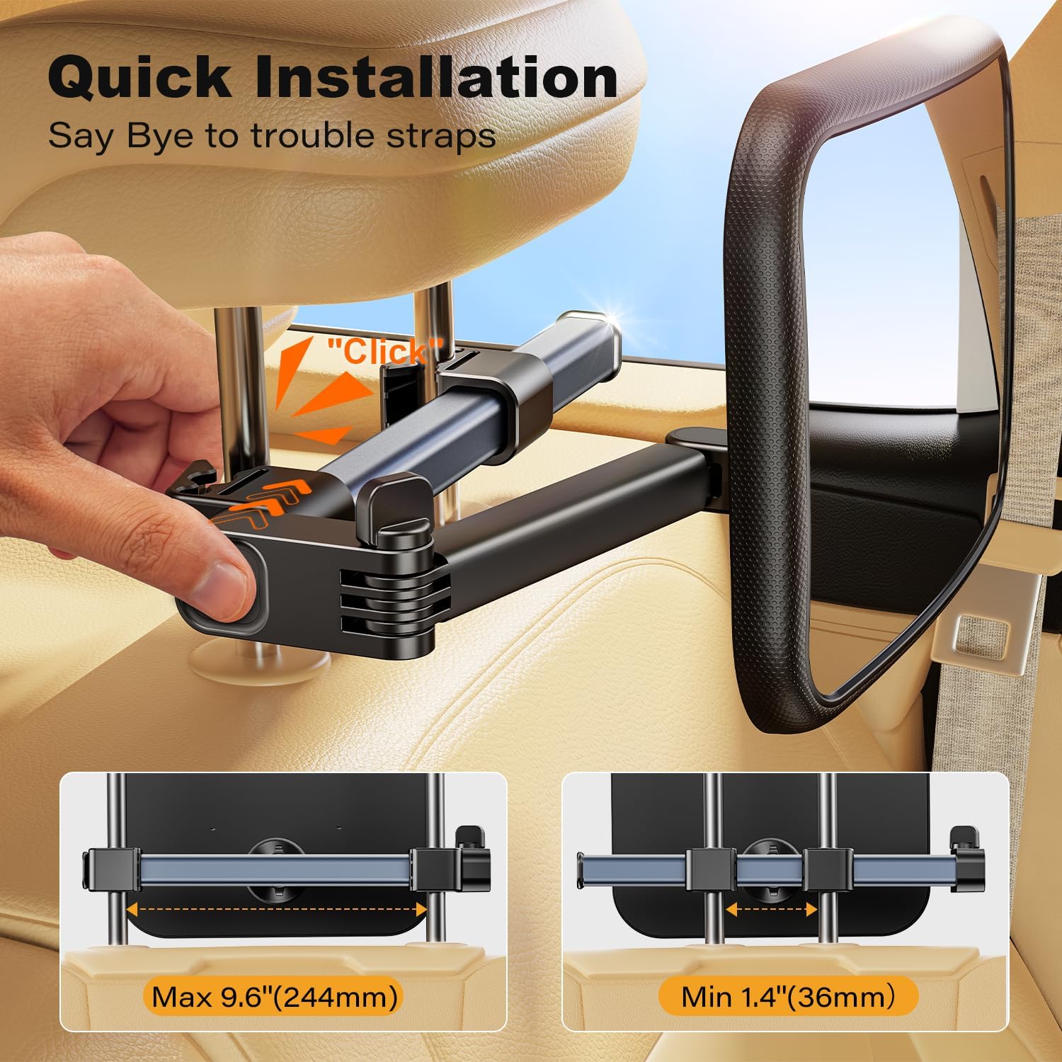 - [Always Stable with 3s Installed] The baby car mirror rear facing uses the hook clip design without any cumbersome straps. Just clamp the headrest pole to form a triangular fixation. The mirror can be stable even on rugged country roads. No more adjusting the mirror again and again.
