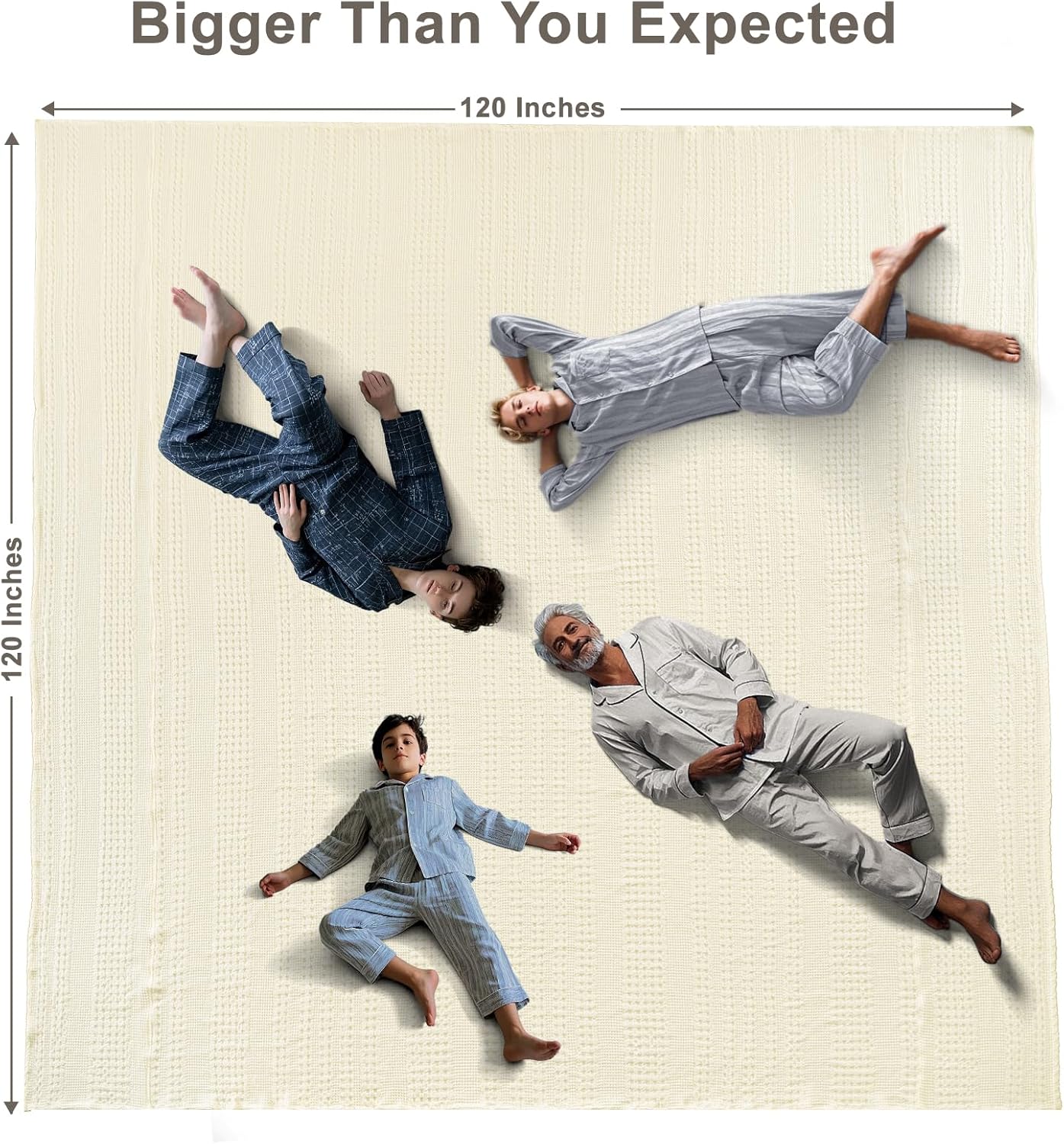 PHF 100% Cotton Waffle Blanket Oversized King 120"x120", Lightweight Breathable Extra Large 10'x10' Summer Blankets for Bed, Giant Big Luxury Aesthetic Woven Bedding for Home Decor, Cannoli Cream