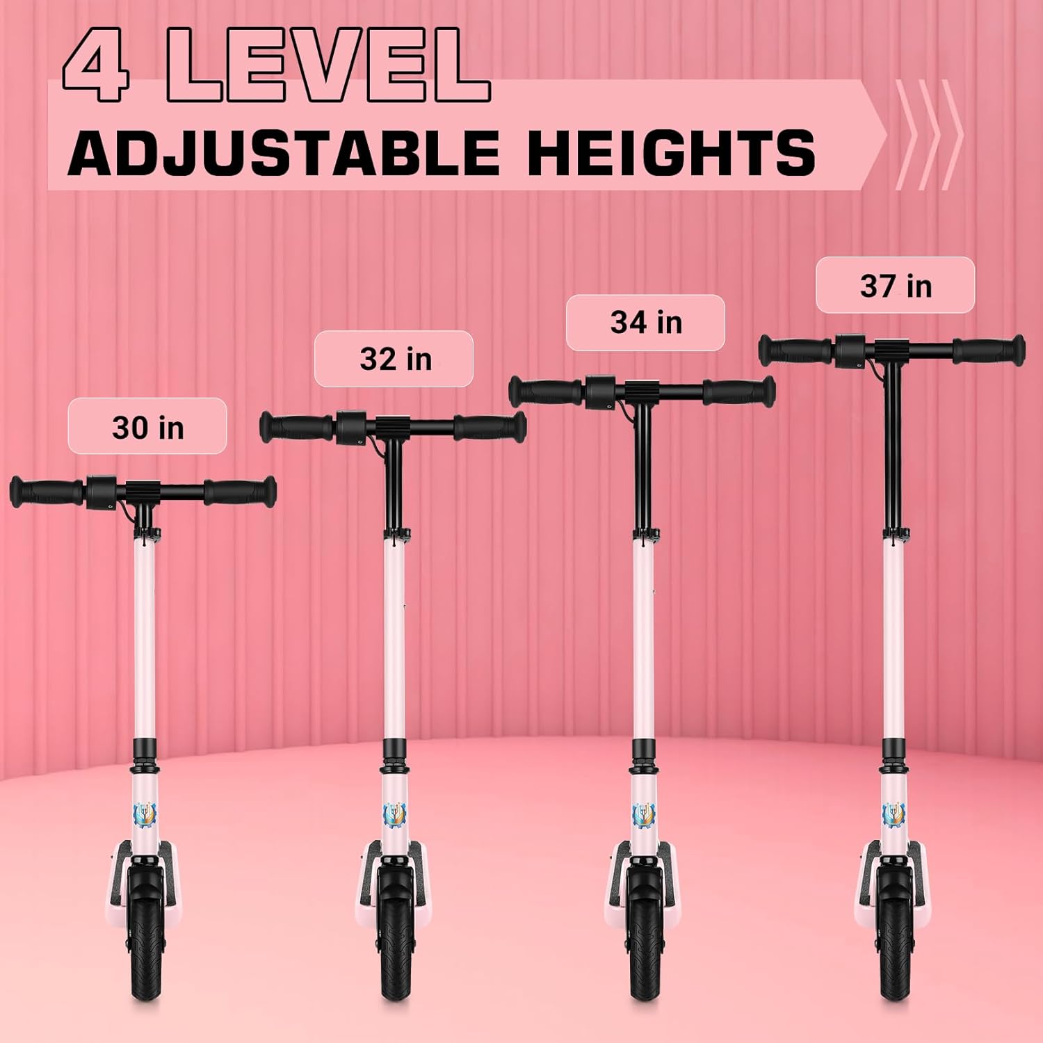 - 【🚀Accompany Kids to Grow Up】The Caroma electric scooter for kids is designed with 4 adjustable heights handlebar, the height can be adjusted to 28/31/34/37 inches, suitable for children from 6-12 (even 14 ages), and is best for boys and girls up to 132 lbs. Caroma is your child’s best partner as they grow up, making it the perfect scooter for kids ages 6-12.