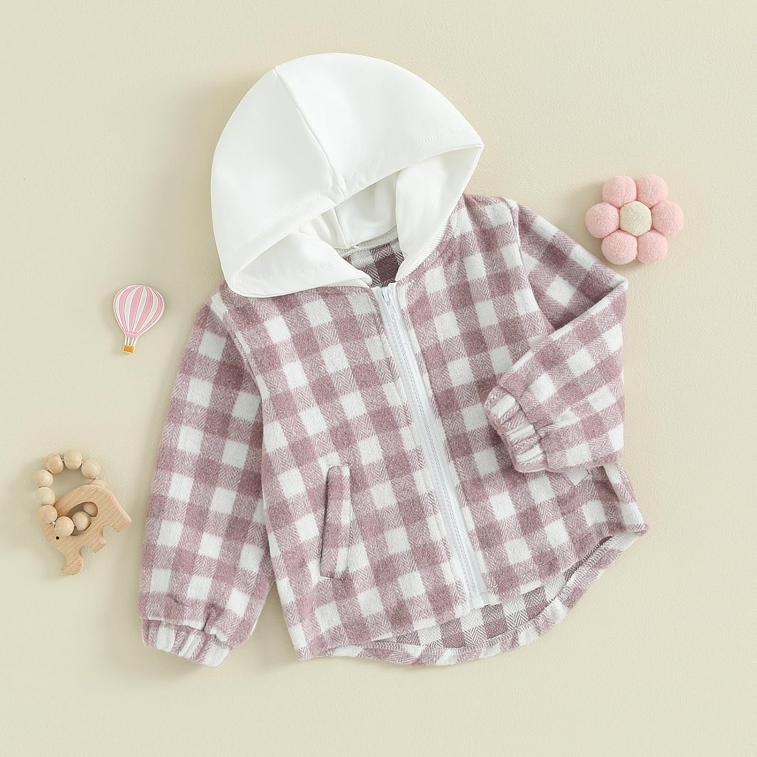 Douhoow Toddler Baby Plaid Jacket Baby Boy GIrl Flannel Hoodies Zip Up Hooded Fall Winter Outerwear Coat