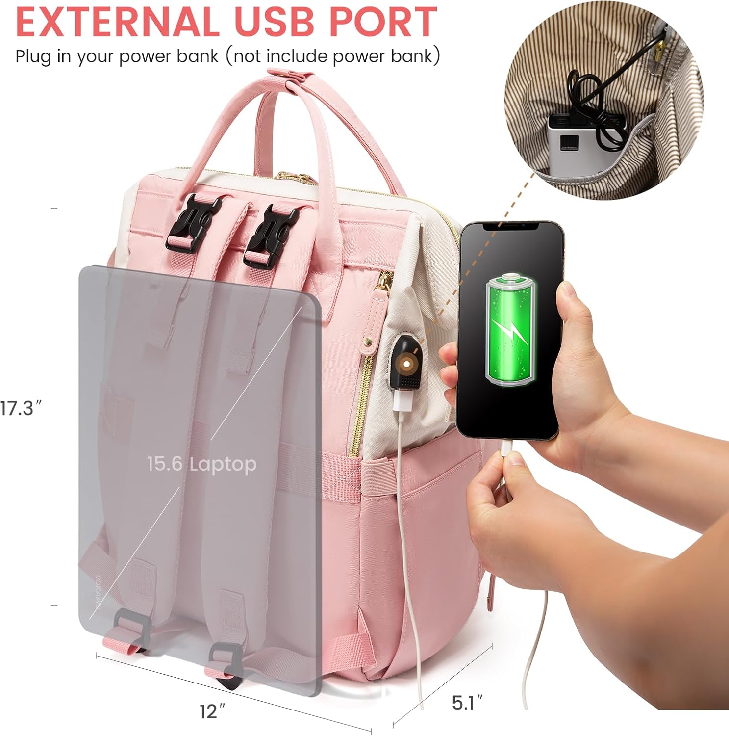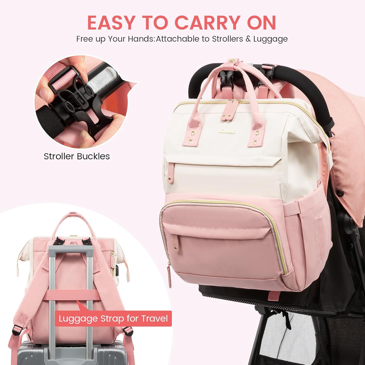 LOVEVOOK Diaper Bag Backpack, Baby Bag with Changing Station, Large Diaper Backpack for Moms Dads, Waterproof Leather Accents Baby Boy and Girl Bag for Travel Baby Essentials, Pink-Beige