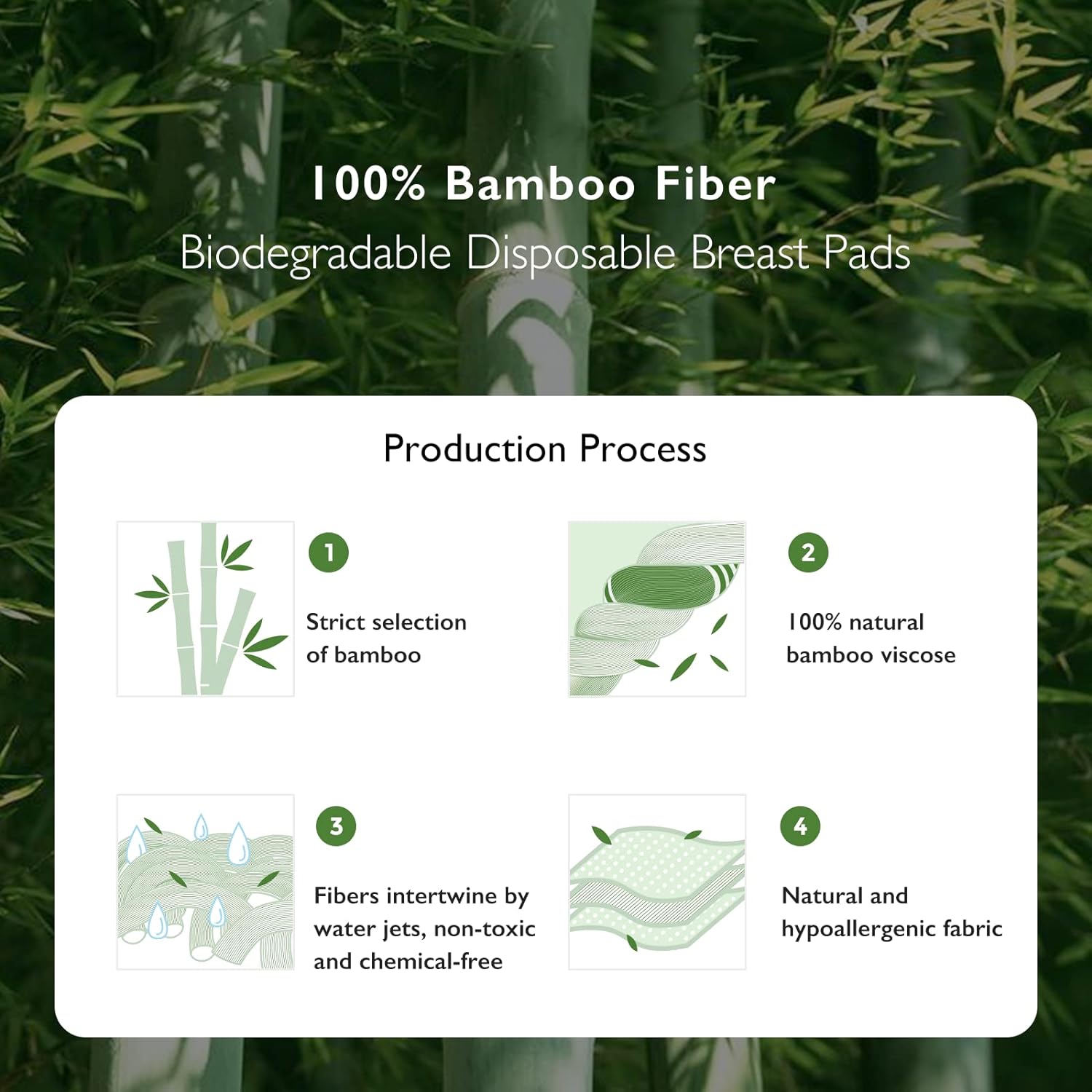 - 【100% Bamboo Fiber】Momcozy Bamboo Nursing Pads are made of natural bamboo fiber from raw material to manufacturing process. The degradation rate is 25% faster than ordinary breast pads, reducing carbon emissions. The use of bamboo fiber breast pads can reduce the dependence on limited resources and reduce the load on the environment.