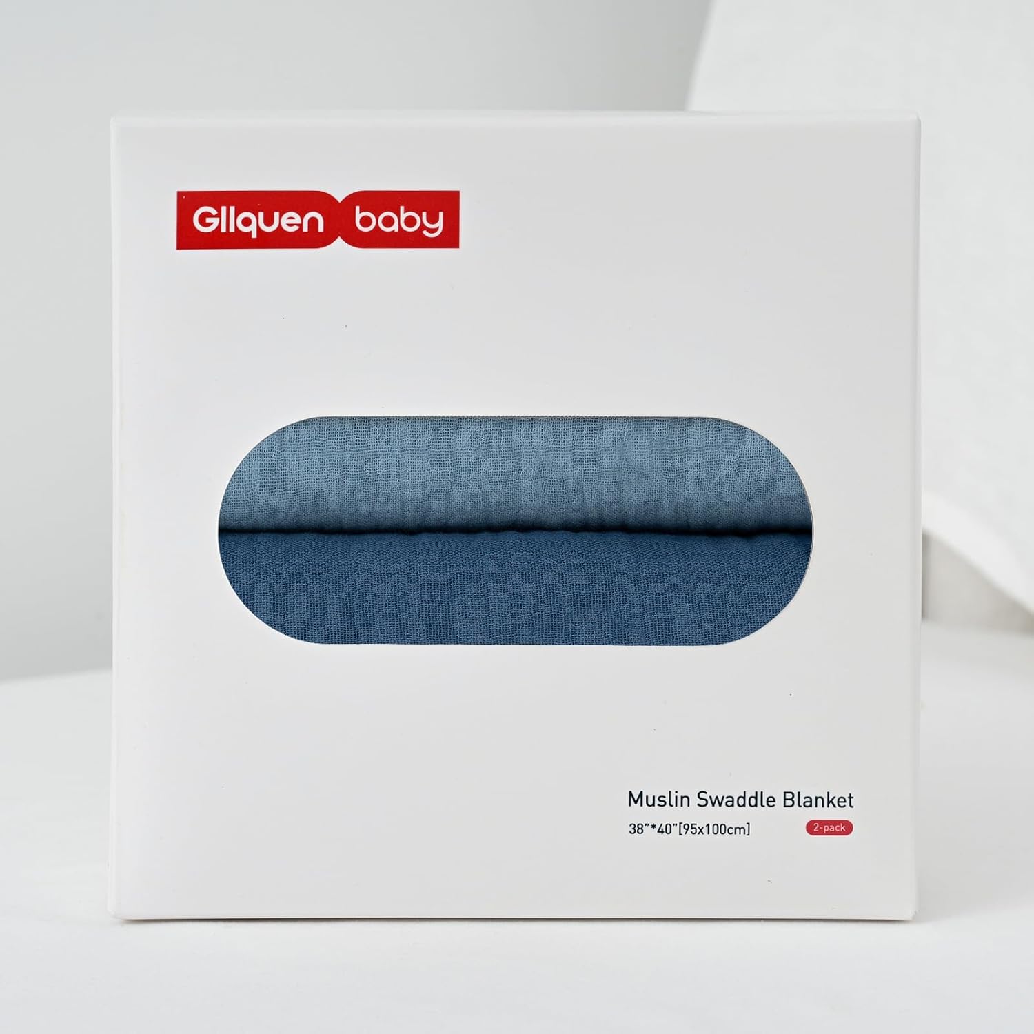 GLLQUEN BABY Muslin Swaddle Blankets, 2-Pack Neutral Receiving Blanket Swaddling for Newborn Boys and Girls, Breathable Swaddle Wrap for Infant, Baby Essentials, Registry & Gift, 40 x 38 inches