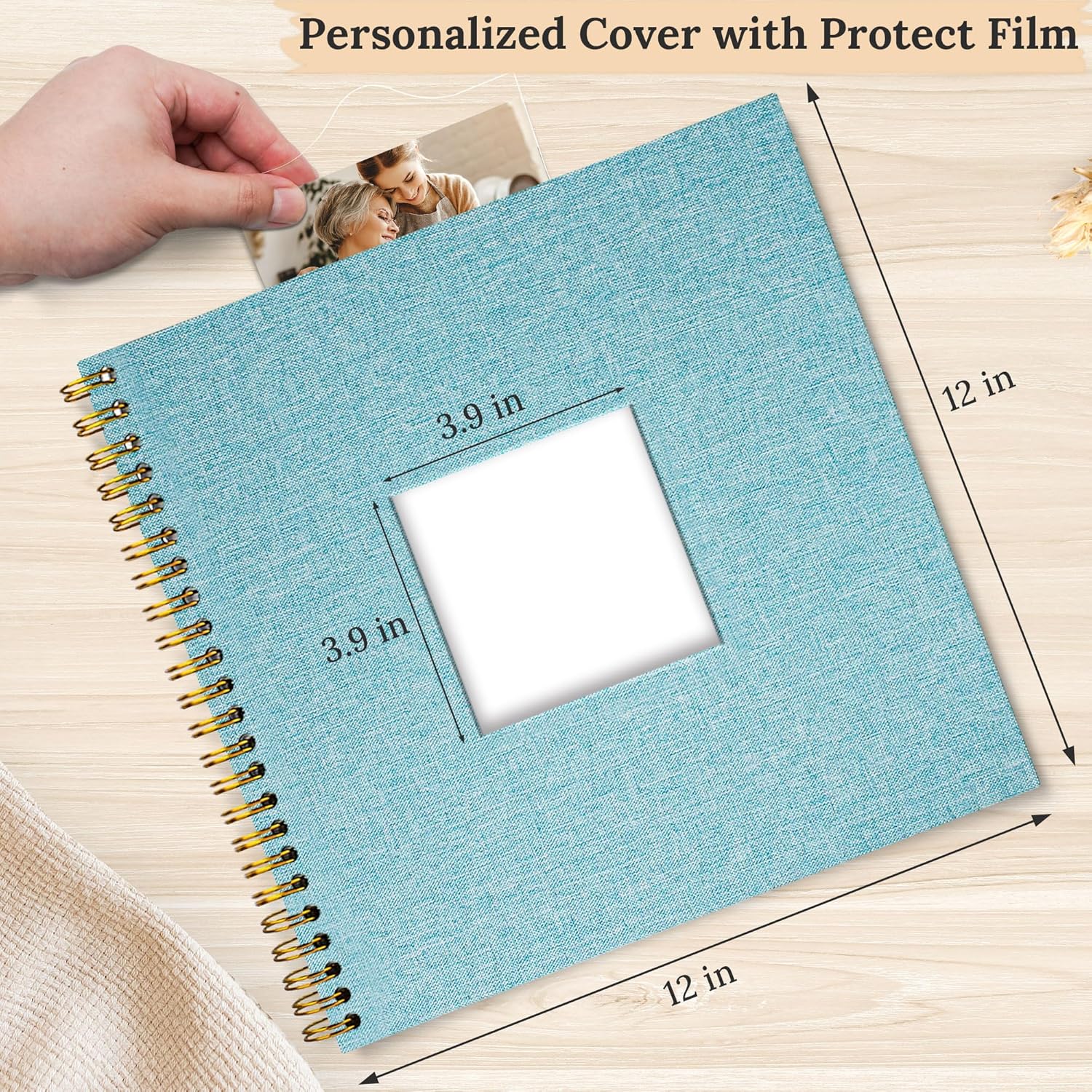 Scrapbook Photo Album Linen Cover, 12 x 12 Inch Hardcover Kraft White Pages Memory Book, for Travel Wedding Guest Book Christmas Baby Shower (40 Sheets/ 80 Pages,Light Blue)