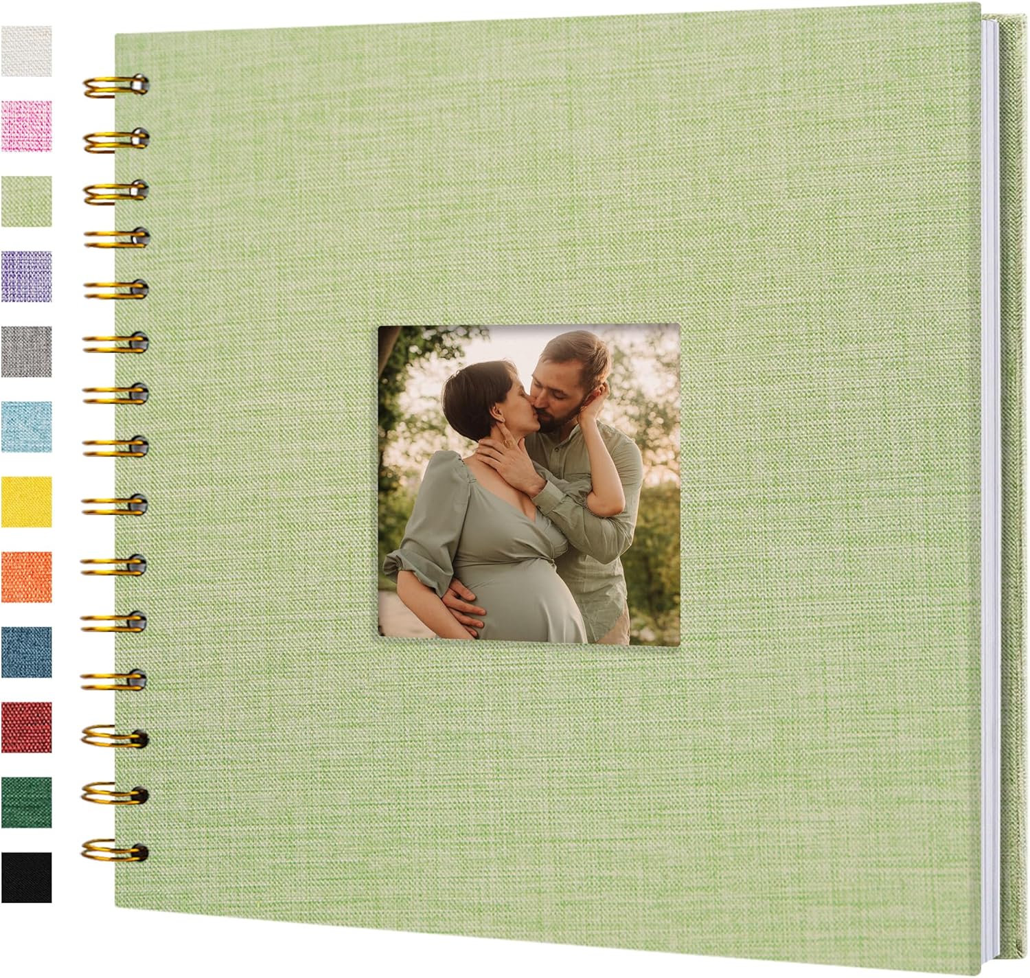 Scrapbook Photo Album Linen Cover, 8 x 8 Inch Hardcover Kraft White Pages Memory Book, for Travel Wedding Guest Book Christmas Baby Shower (20 Sheets/ 40 Pages,Grassgreen)