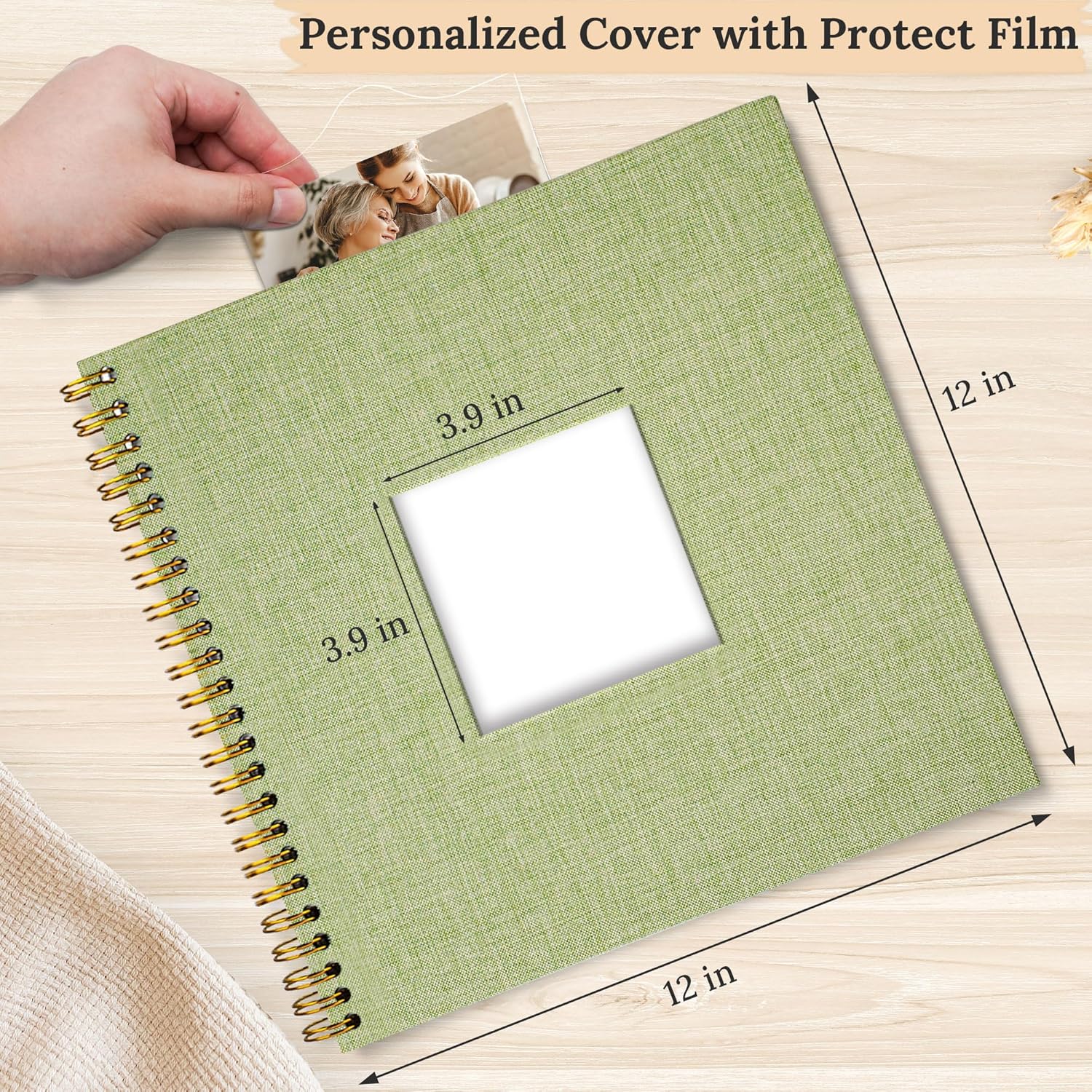 Scrapbook Photo Album Linen Cover, 12 x 12 Inch Hardcover Kraft White Pages Memory Book, for Travel Wedding Guest Book Christmas Baby Shower (40 Sheets/ 80 Pages,Grassgreen)