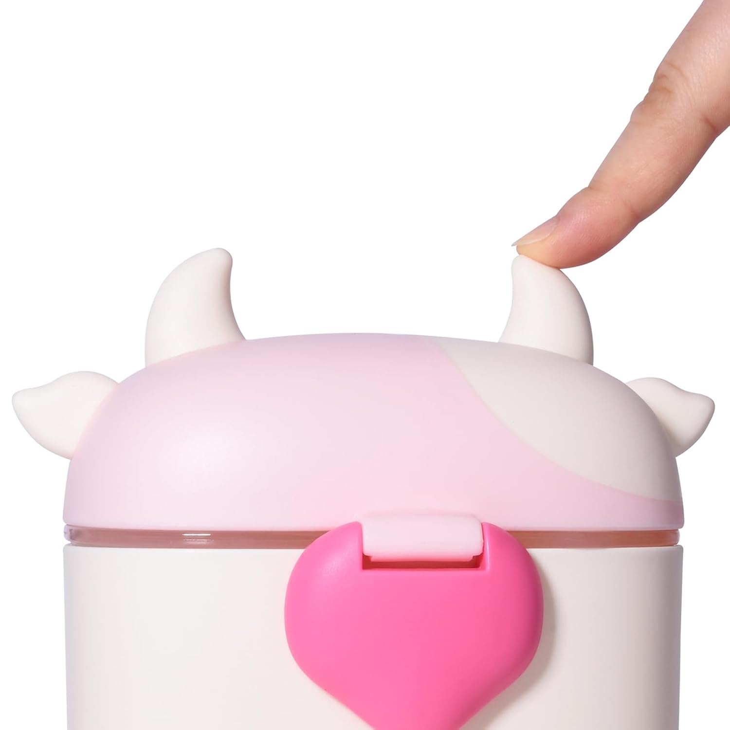 Bebamour Baby Formula Dispenser On The Go, Formula Container to Go, Formula Holder for Travel, Candy Fruit Snack Storage Container with Scoop and Leveller (Light Pink Cow)