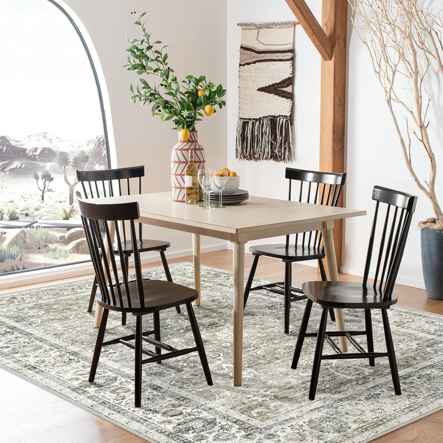 Deerly Washable Rug 5x7 Area Rugs for Living Room, Non Slip Large Rug for Bedroom Dining Room, Low-Pile Kid & Pet Friendly Distressed Carpet Print Floor(Cream)