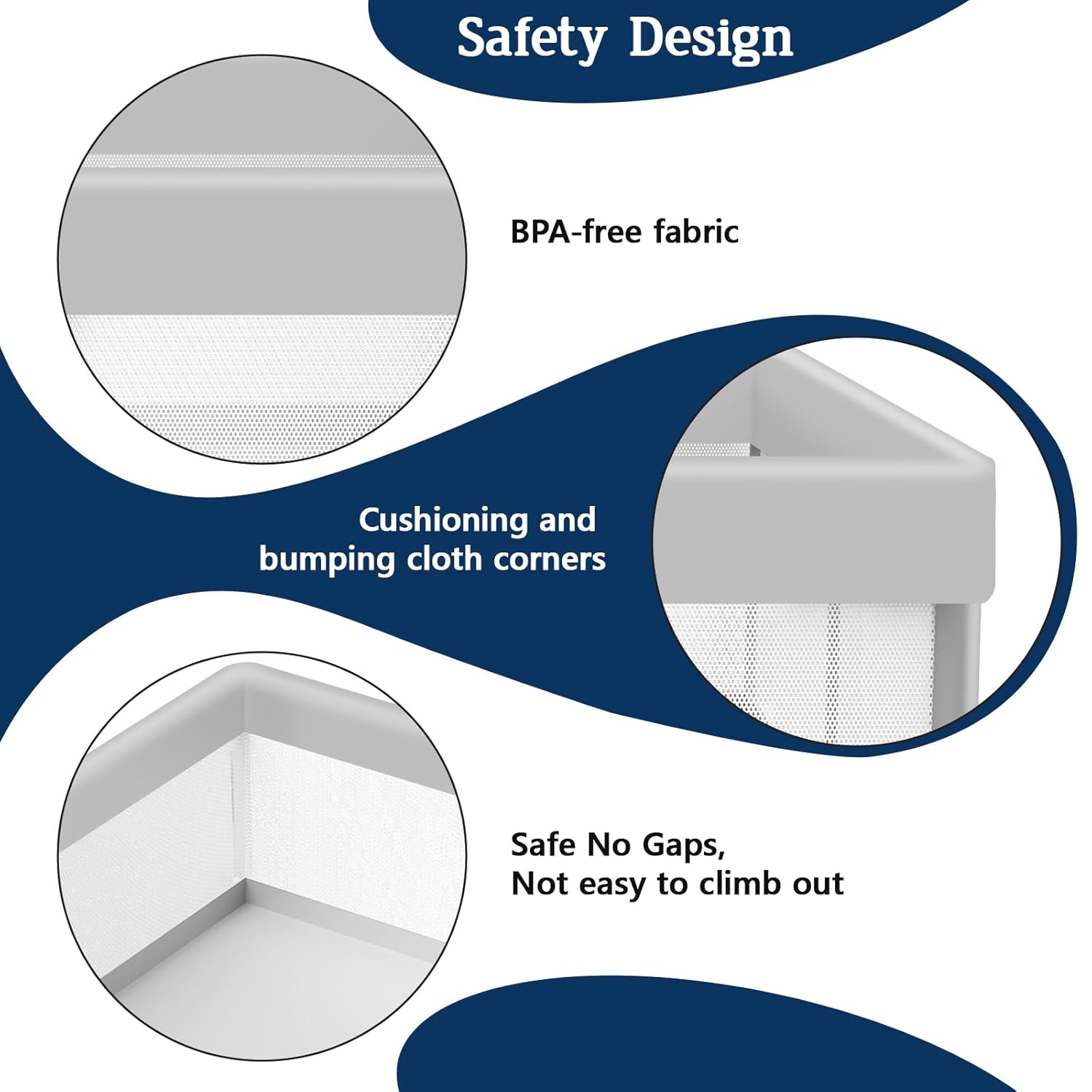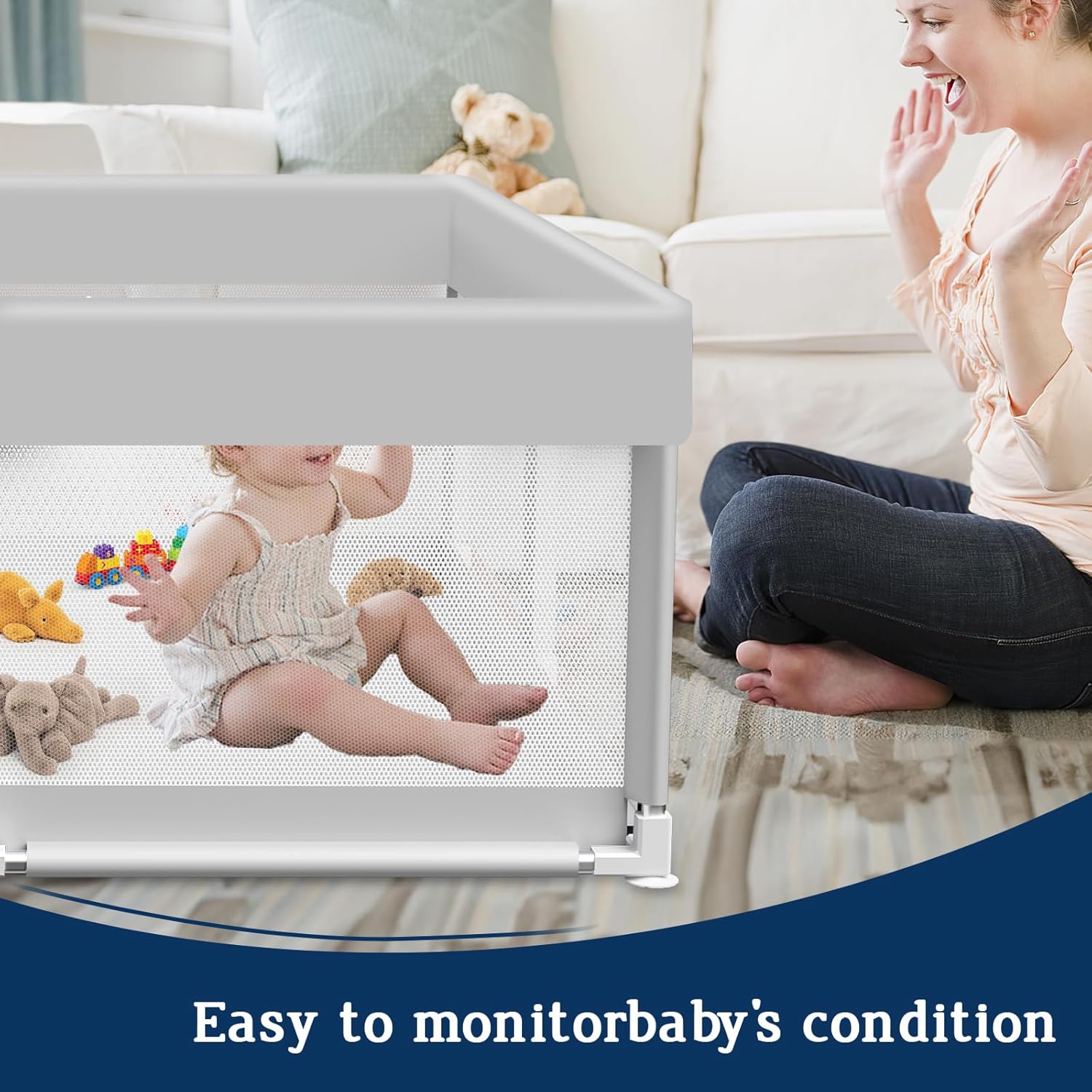 - 360 ° Visual Design-The side of baby fence feature is 360 ° visible,breathable mesh fabric. it allows you to keep an eye on your child at all times ,and lets them see you,ensure you and your baby get immense sense and comfort.