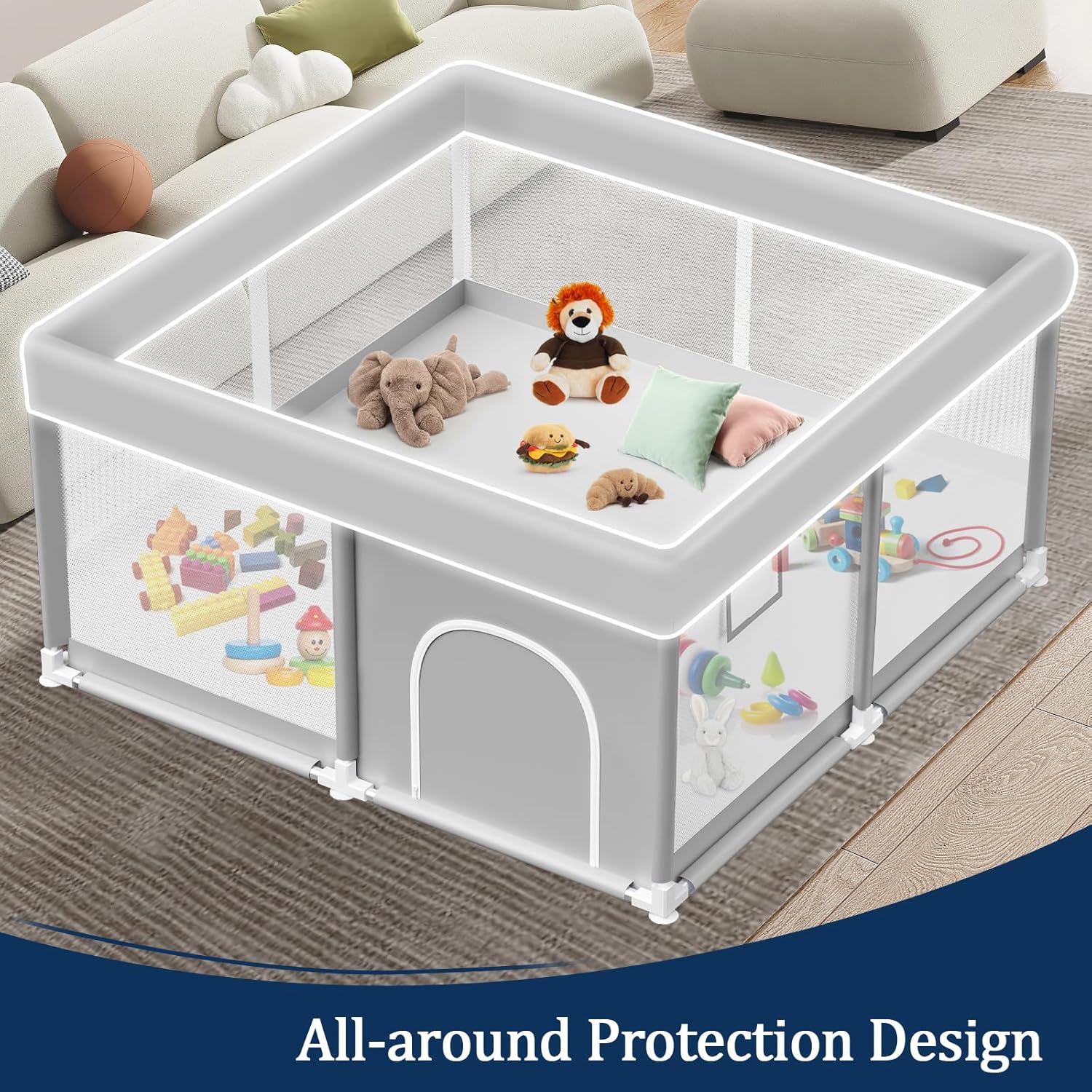 - Multiple Protection Design- Our baby playard has a good height on the sides,about 27inch, Baby can't try to climb over the edges of it.Playard with Anti-Slip base,safe&stable.Plus,it links are covered with a thick fence fabric to cushion the damage caused by baby bumps.