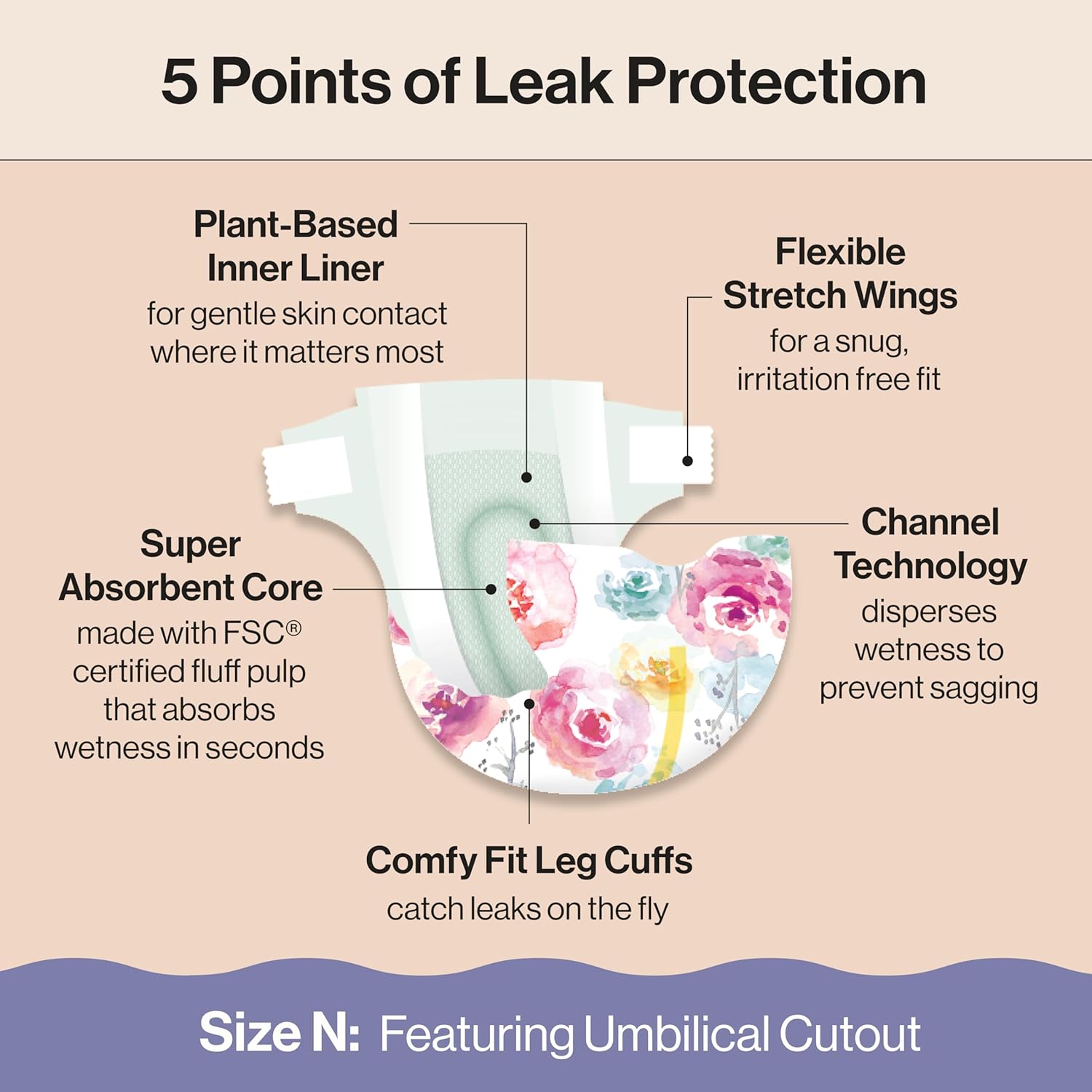 - OUR BEST FIT YET: Designed to move with your baby, Honest Clean Conscious Diapers feature comfy fit leg cuffs to catch leaks on the fly and flexible, stretchy wings that provide a snug, irritation-free fit. The super cute prints are an added bonus