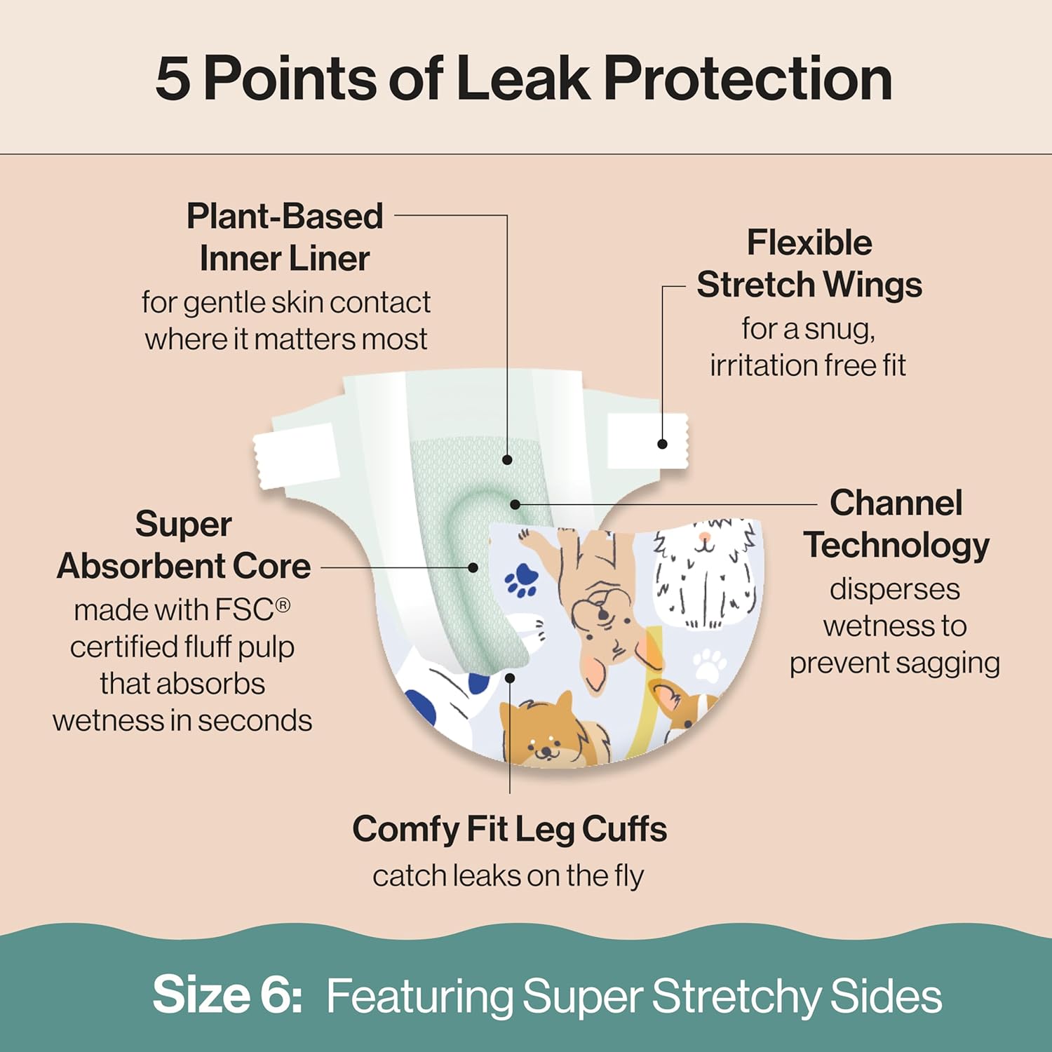 The Honest Company Clean Conscious Diapers for Delicate Skin | Up to 100% Leakproof | Hypoallergenic, Fragrance Free | Gender Neutral | Club Box, Size 6 (35+ lbs), 40 Count (Prints May Vary)