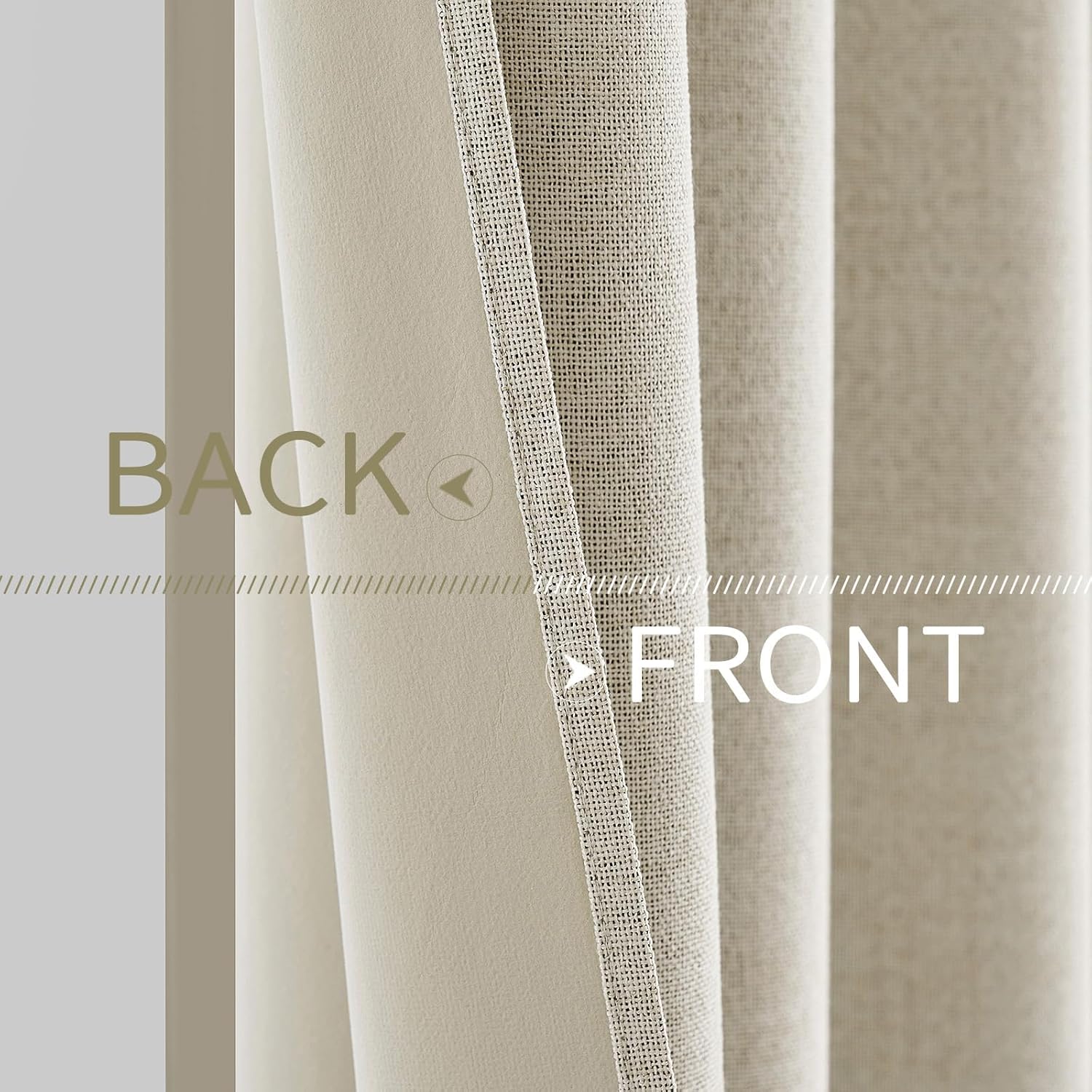 MIULEE 100% Blackout Linen Textured Curtains for Bedroom Solid Thermal Insulated Cream Grommet Room Darkening Curtains & Drapes Luxury Decor for Living Room Nursery 42 x 84 Inch (2 Panels)