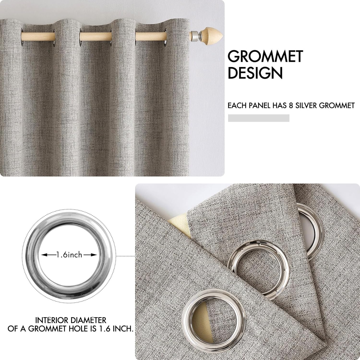 MIULEE 100% Blackout Linen Textured Curtains for Bedroom Solid Thermal Insulated Warm Taupe Grommet Room Darkening Curtains & Drapes Luxury Decor for Living Room Nursery 42 x 90 Inch (2 Panels)