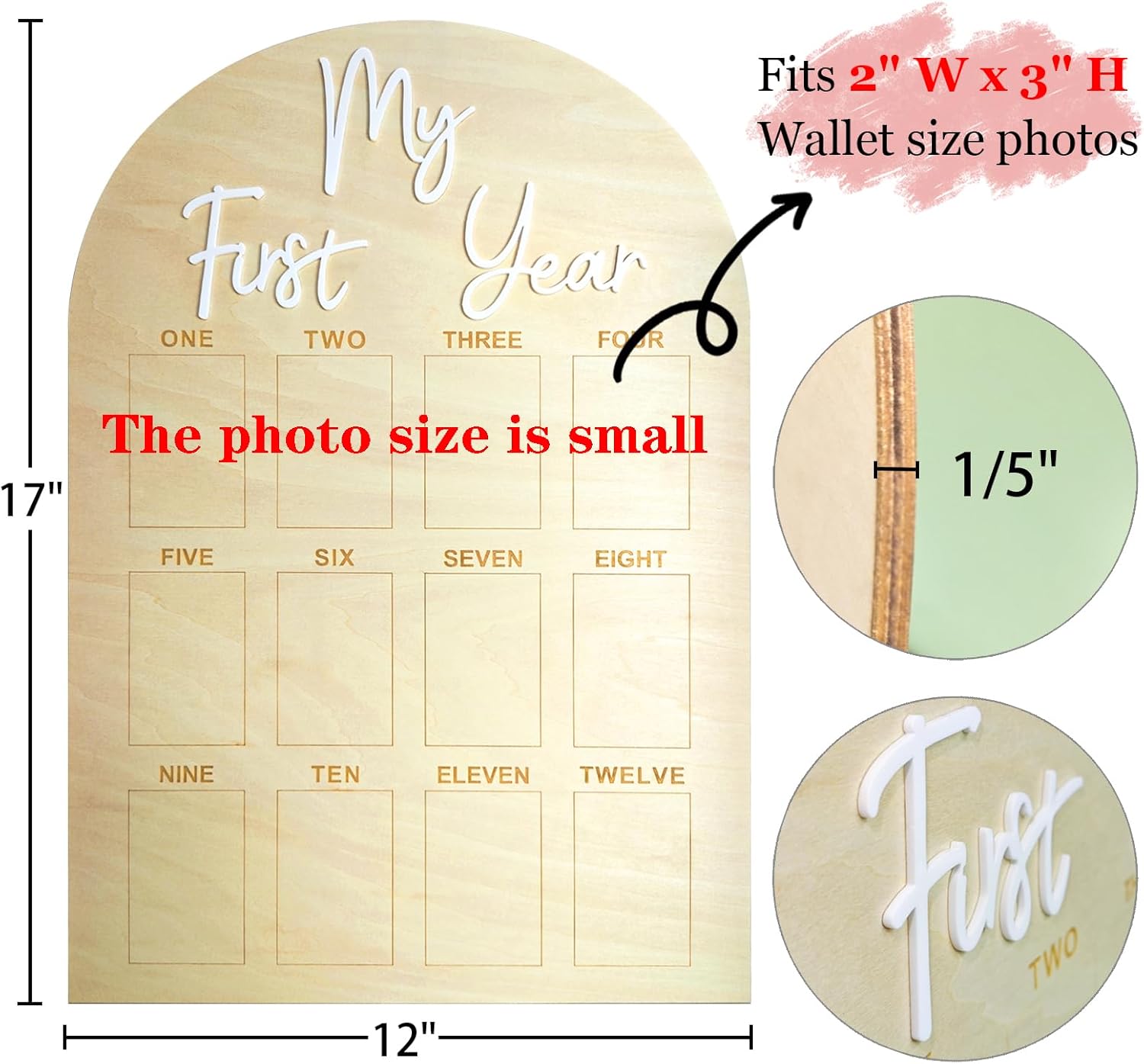 - SIZE AND MATERIAL - My first year milestone board size 17" high x 12" wide, made from 1/5" thick premium wood,smooth and reusable, not easy to fade or peel.fits 2" x 3" photos (Wallet Size), easy to use.