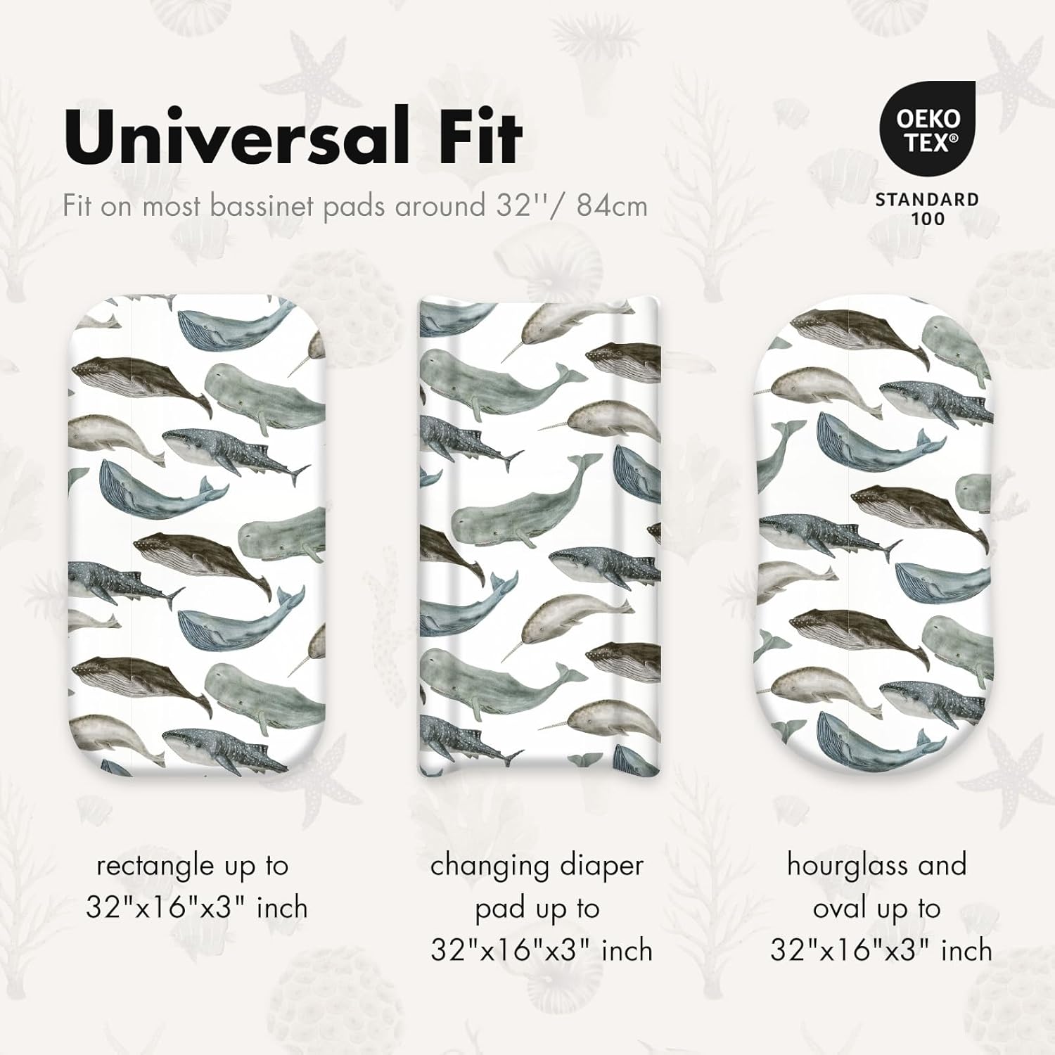 Gllquen Baby Bassinet Sheets 4 Pack, Breathable Cozy Fitted Mattress Sheet, Elastic Travel Crib Fashionable Pattern, Standard Cradle Safe Sheets for Baby Boys Girls 32"x16" (Marine)