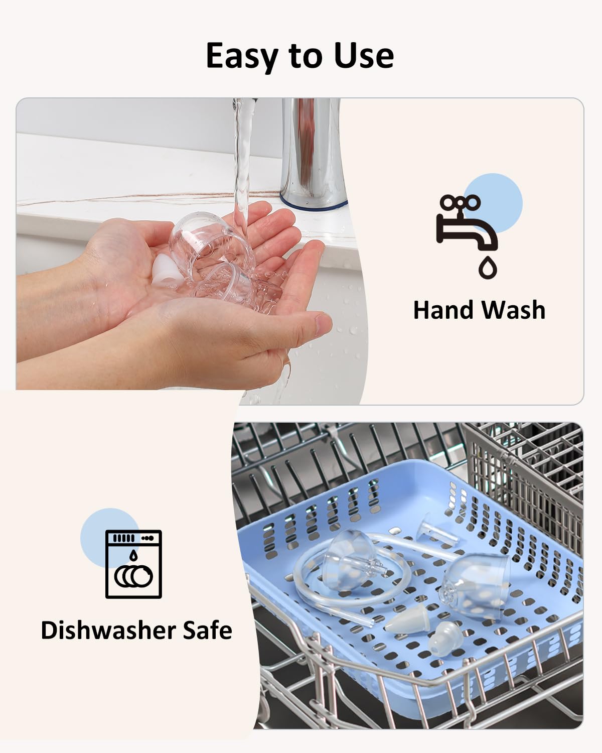 - HASSLE-FREE CLEANING: Experience the convenience of our dishwasher-safe baby nasal aspirator. Designed for effortless maintenance, its transparent suction chamber and tubing detach with ease for a quick rinse under clean water, ensuring hygienic and efficient cleaning every time.