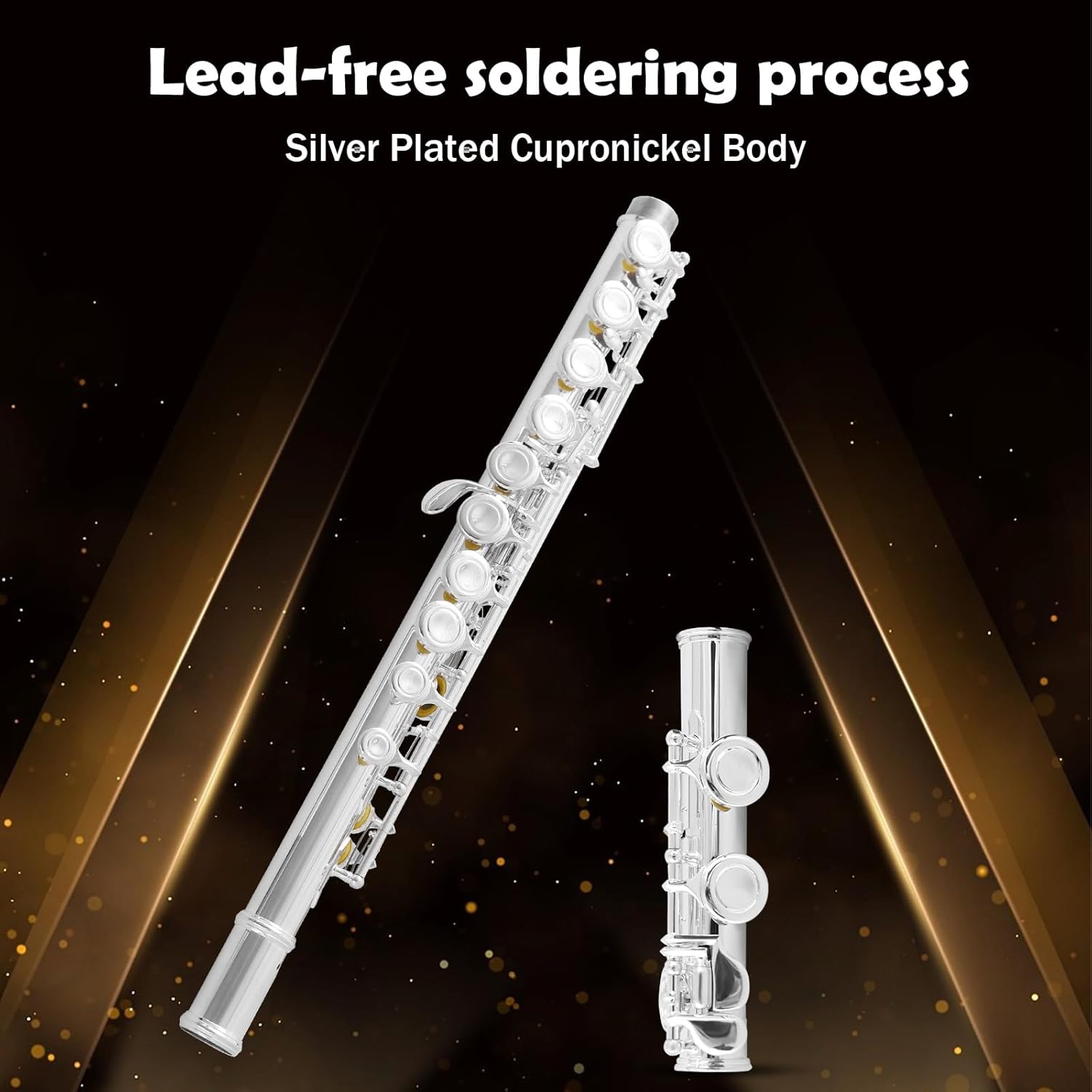 - 【U-SHAPED FLUTE HEAD JOINT】The U-shaped flute head joint specially designed for children allows children to maintain a standard playing posture by shortening the length of the flute,with offset G and split E key have a purer sound and brighter tone than nickel-plated flutes.