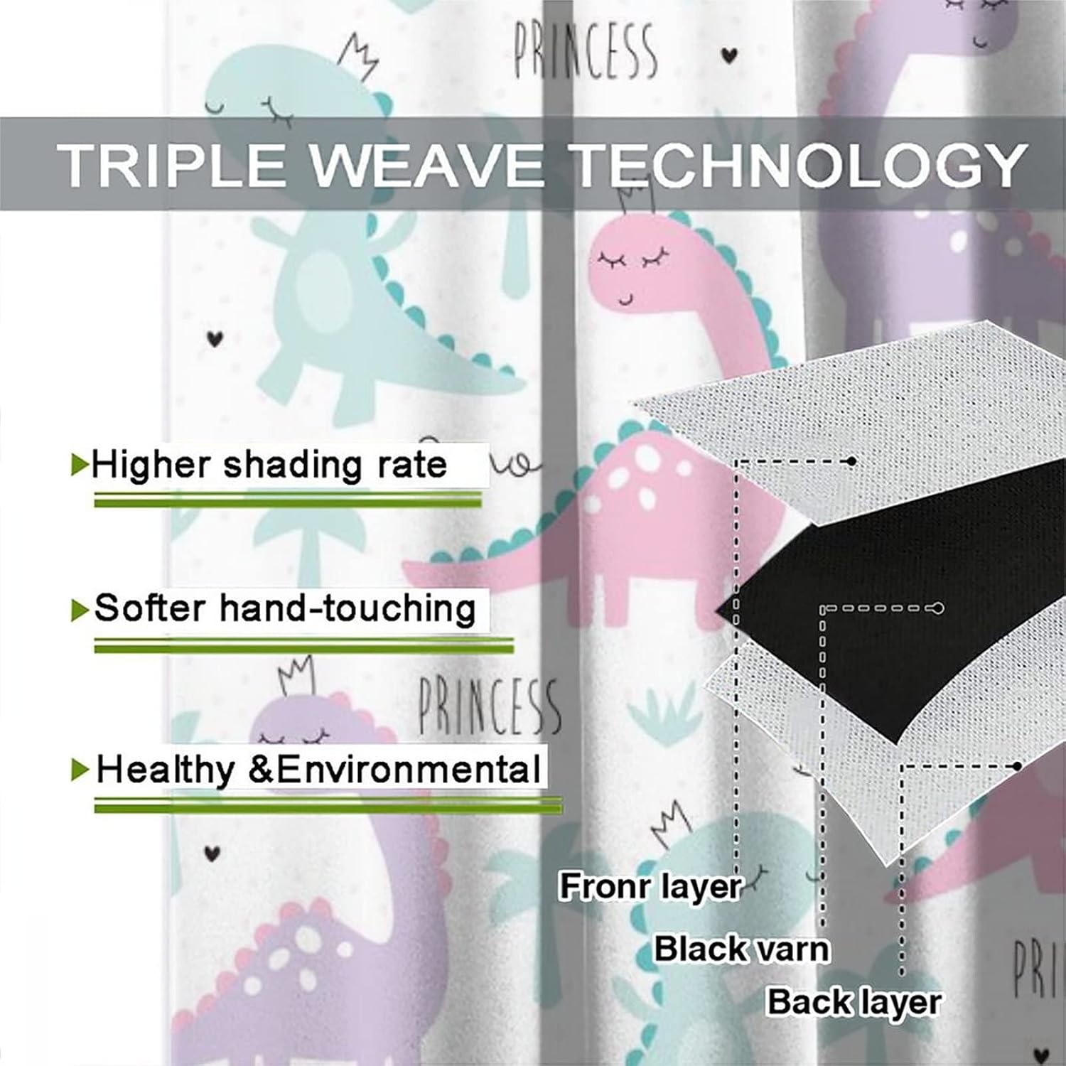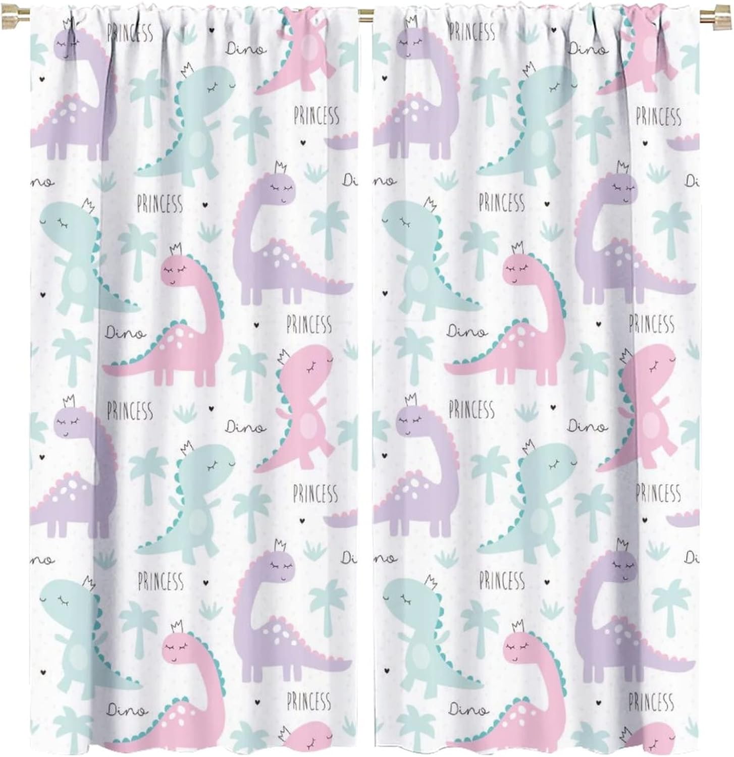 Kids Dinosaur Curtains for Boys Girls Bedroom Decor Cartoon Dino Colorful Cute Funny Animal Wildlife Printed Blackout Rod Pocket Window Drapes for Baby Nursery Playroom W31.5xL72in 2 Panels