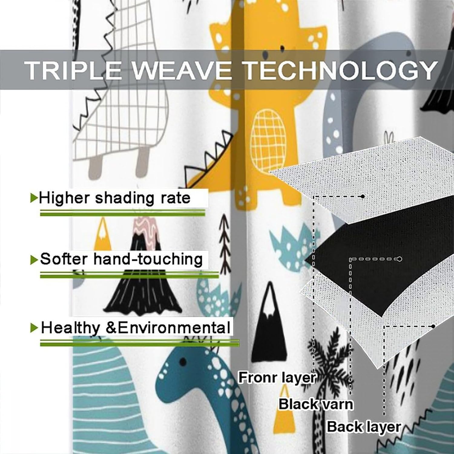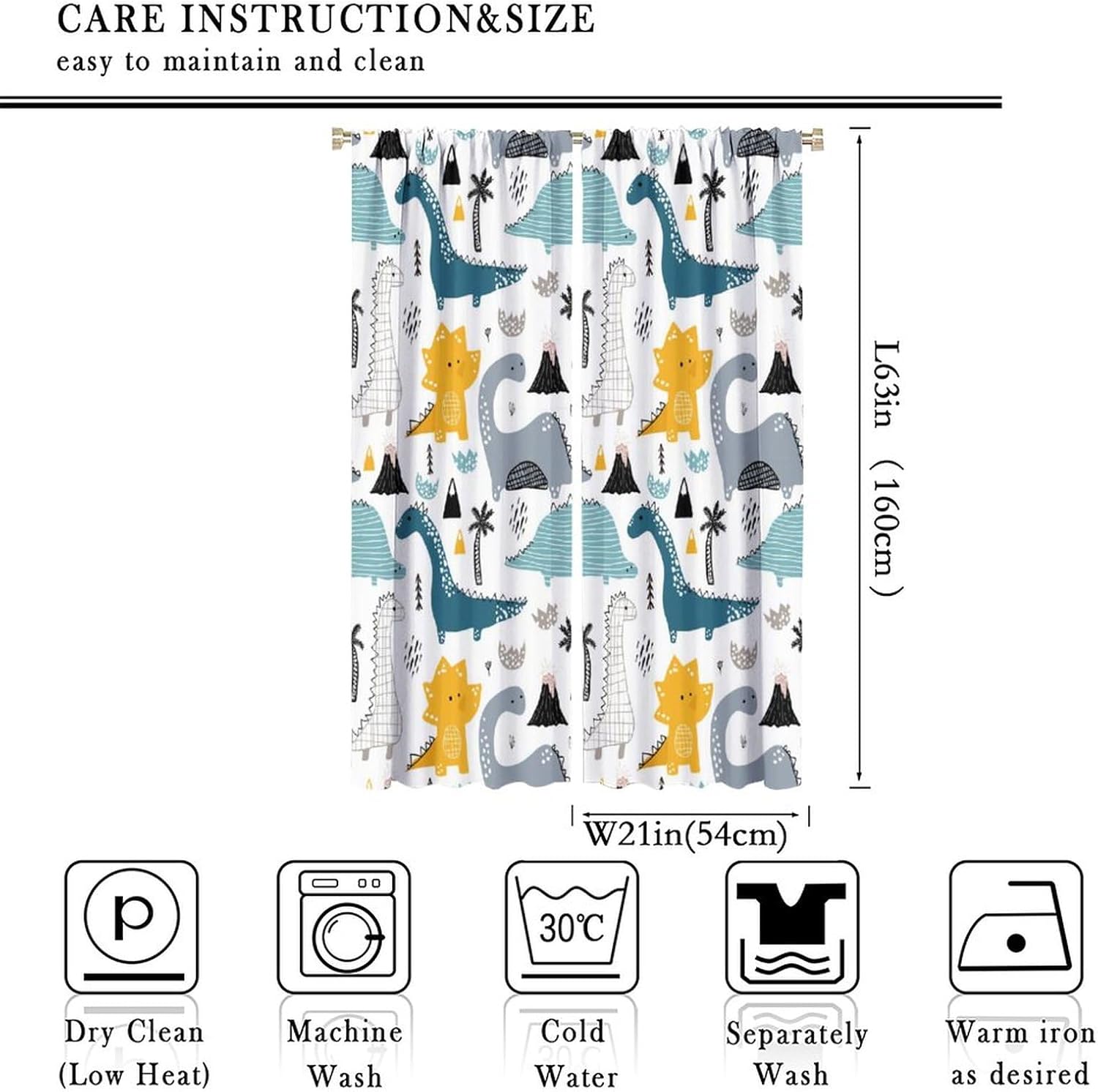 Kids Dinosaur Curtains for Boys Girls Bedroom Decor Cartoon Dino Colorful Cute Funny Wildlife Animal Printed Blackout Rod Pocket Window Drapes for Baby Nursery Playroom Living Room W21xL63in 2 Panels