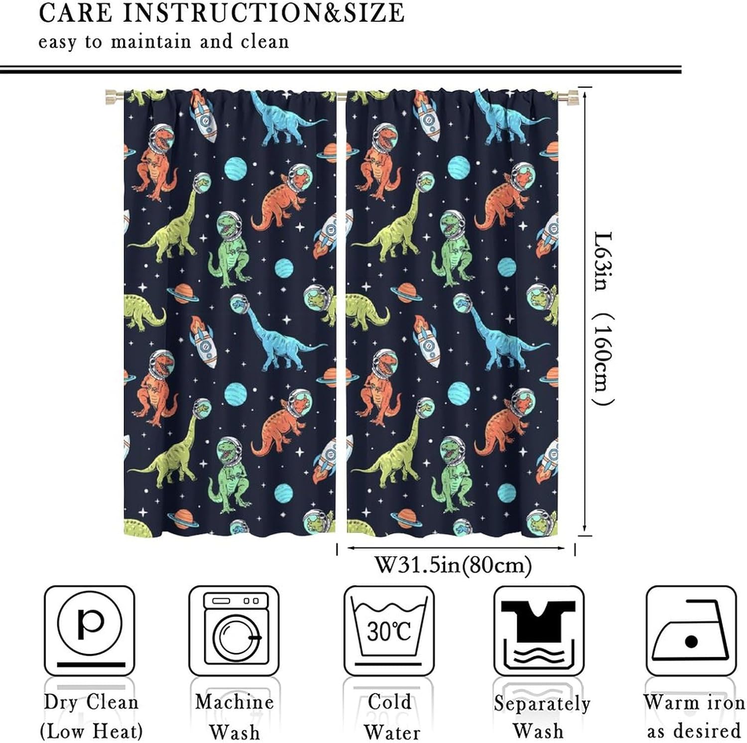 Cartoon Dinosaur Curtains for Kids Boys Girls Home Decor, Astronaut Rocket Funny Outer Space Blackout Rod Pocket Window Drapes for Bedroom Living Room W31.5xL63in 2 Panels