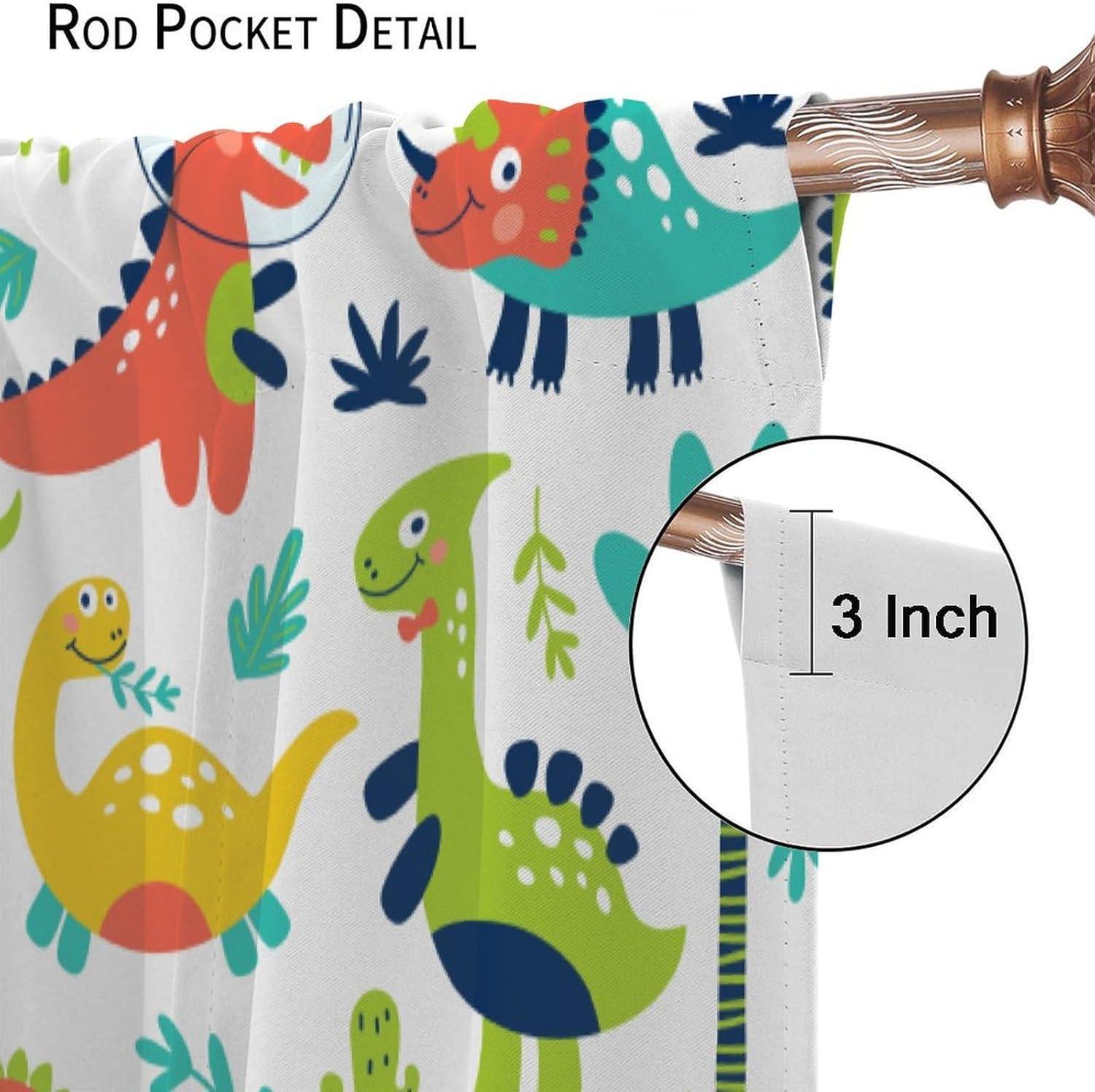 Rustic Dinosaurs Curtains Colorful Dino Kids Boys Cartoon Cute Cool Funny Decor Printed Blackout Rod Pocket Window Drapes for Living Room Bedroom W21xL63in 2 Panels