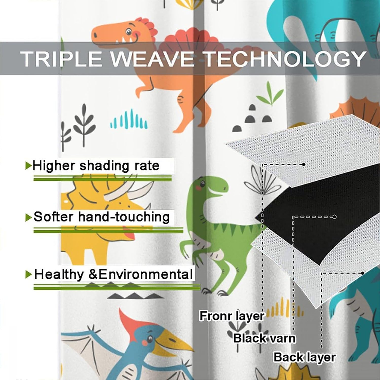 Kids Dinosaur Curtains for Boy Girl Bedroom Decor Cartoon Dino Colorful Cute Funny Animal Wildlife Printed Blackout Rod Pocket Window Drapes for Baby Nursery Playroom Living Room W31.5xL63in 2 Panels