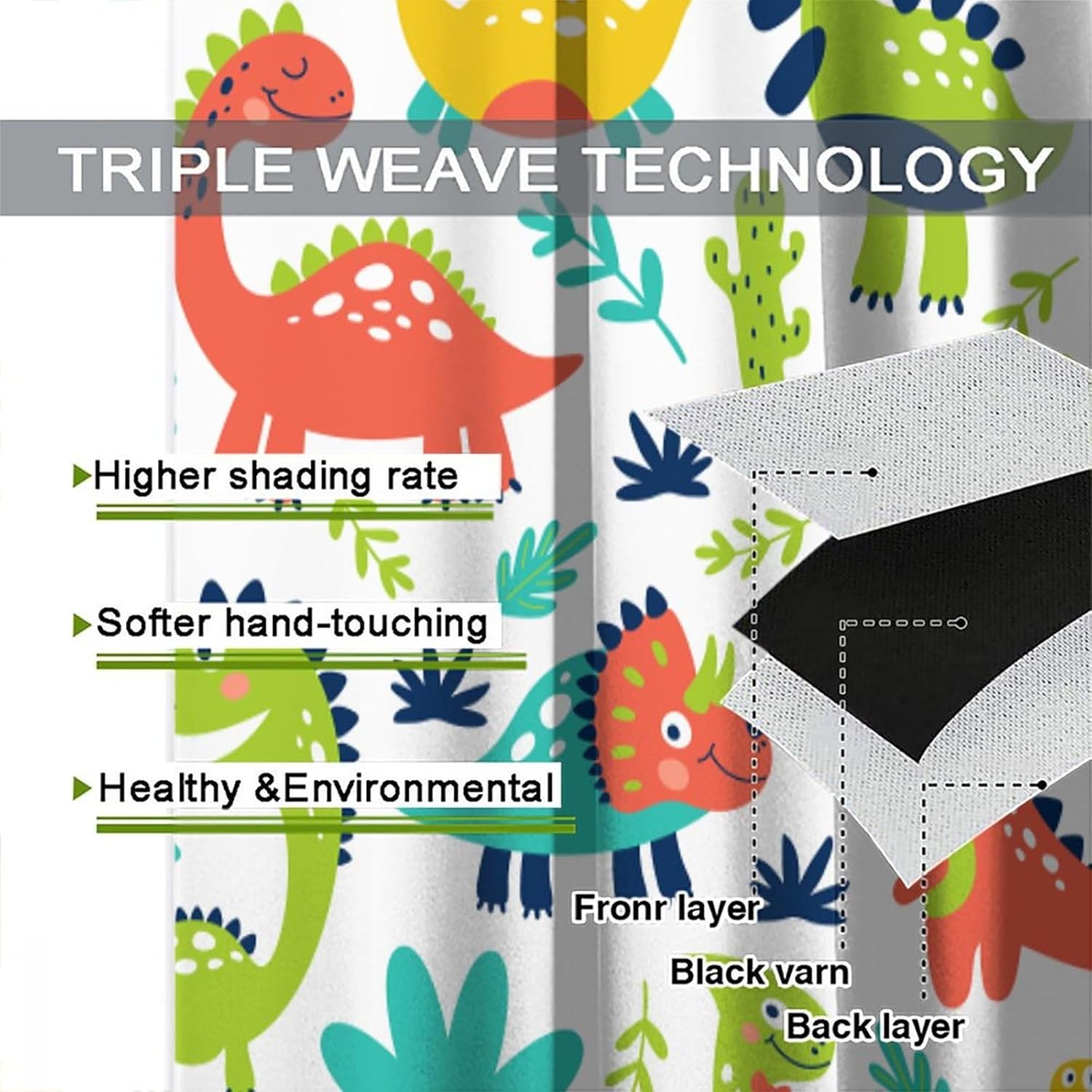 Rustic Dinosaurs Curtains Colorful Dino Kids Boys Cartoon Cute Cool Funny Decor Printed Blackout Rod Pocket Window Drapes for Living Room Bedroom W27.5xL63in 2 Panels