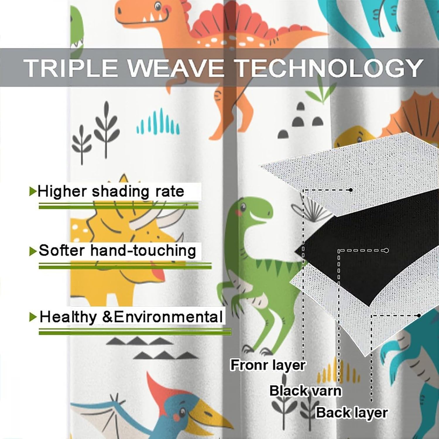 Kids Dinosaur Curtains for Boy Girl Bedroom Decor Cartoon Dino Colorful Cute Funny Animal Wildlife Printed Blackout Rod Pocket Window Drapes for Baby Nursery Playroom Living Room W31.5xL72in 2 Panels