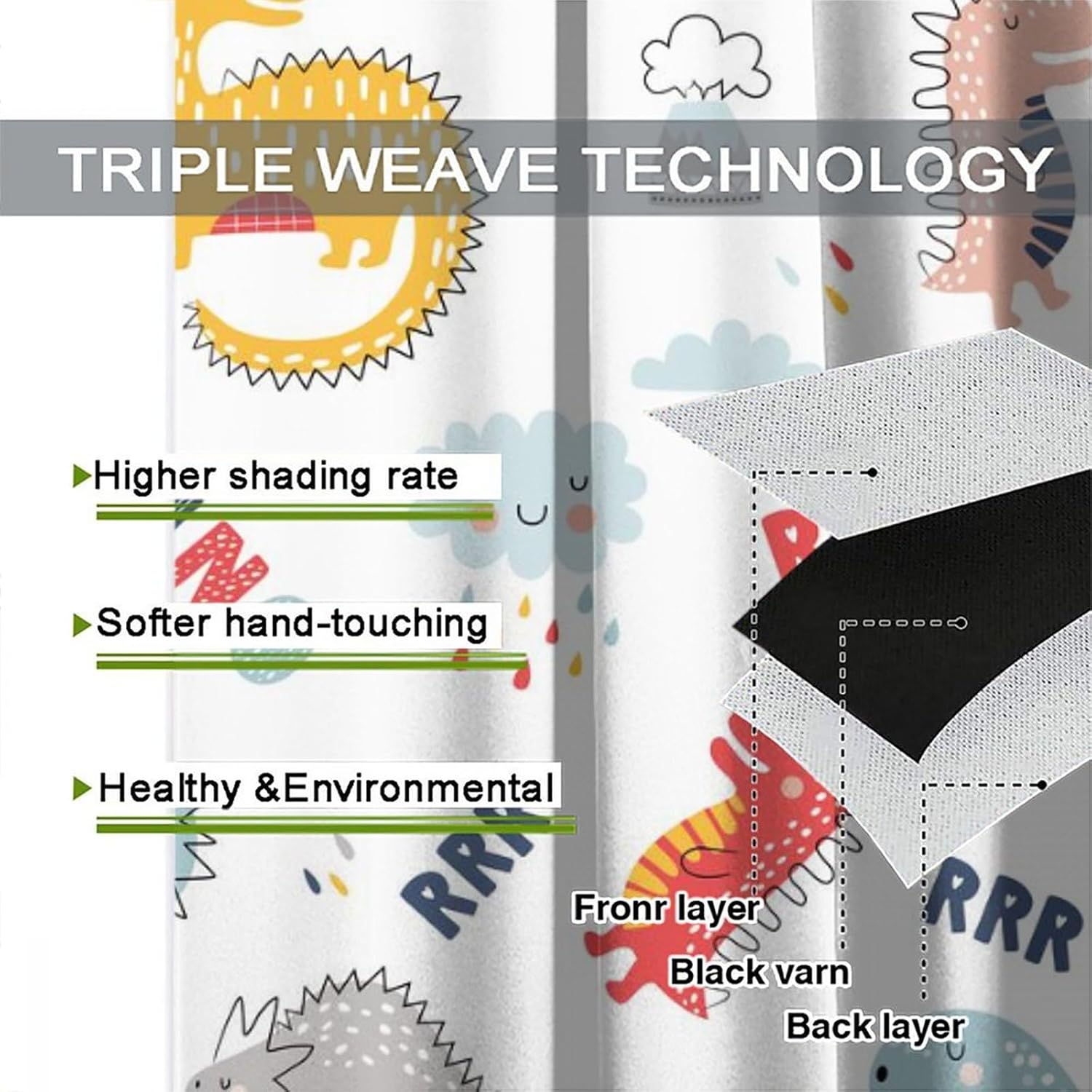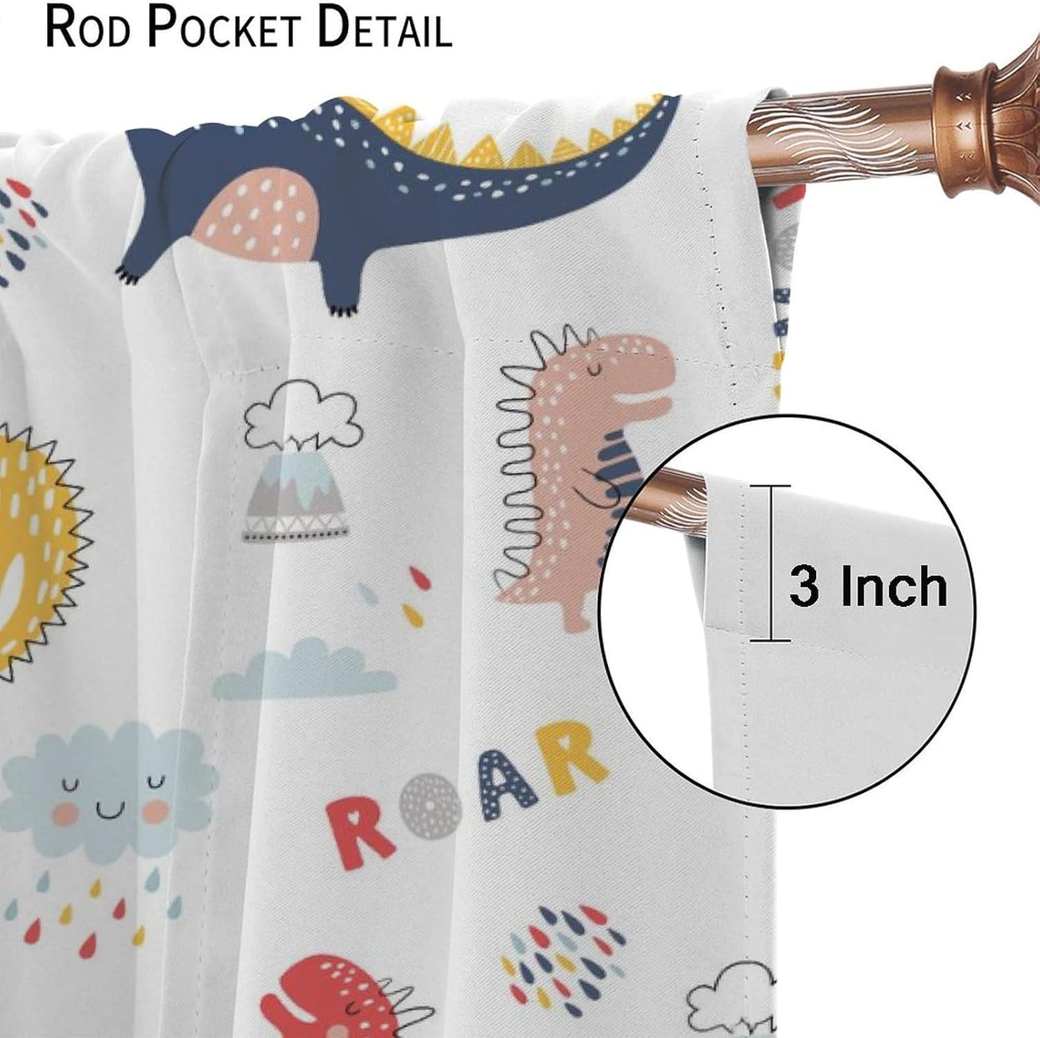 Cartoon Dinosaur Curtains for Kids Boys Girls Home Decor Colorful Cute Dino Animals Print Pattern Rod Pocket Blackout Window Drapes for Nursery Baby Bedroom Playroom W21xL45in Decor