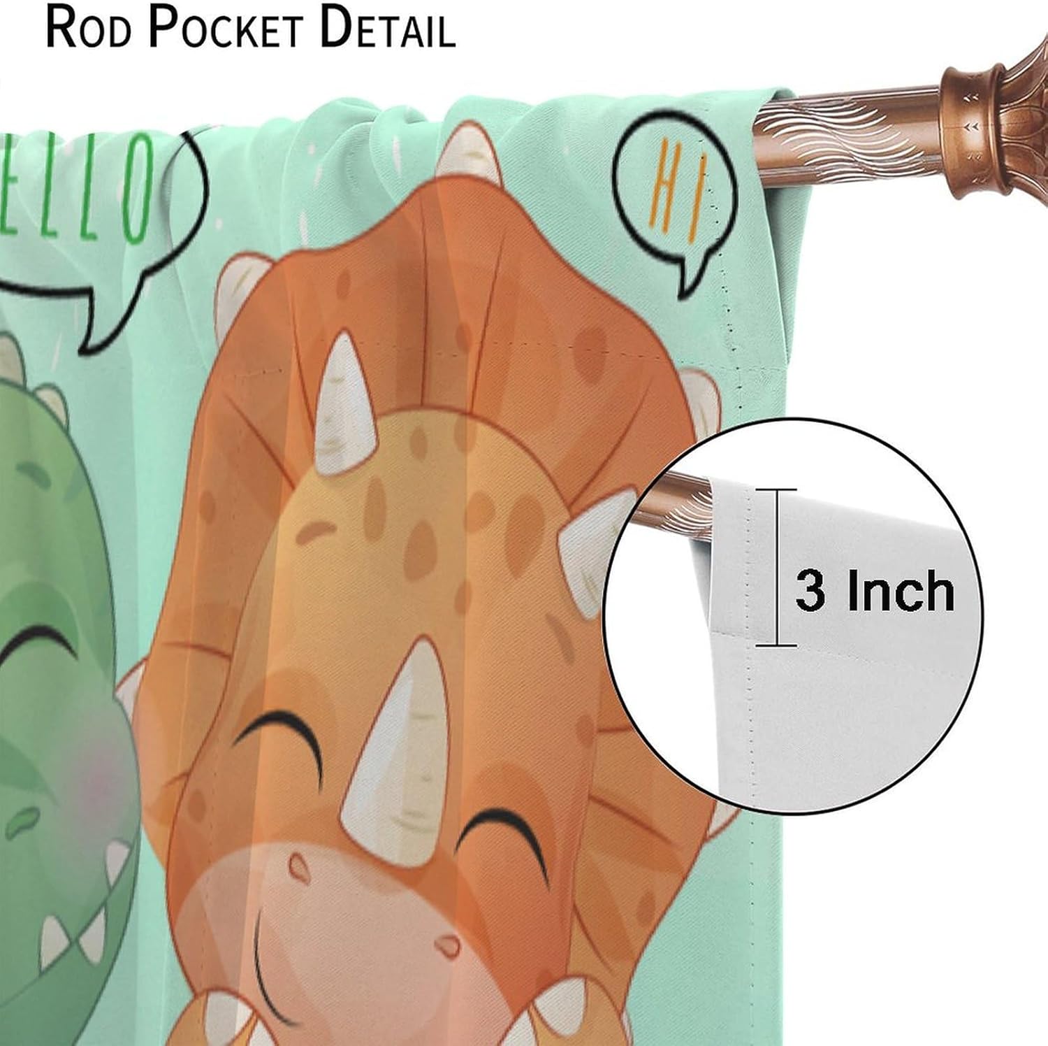 Kids Dinosaur Curtains for Boys Girls Bedroom Decor Cartoon Dino Colorful Cute Funny Animal Printed Blackout Rod Pocket Window Drapes for Baby Nursery Playroom Living Room W31.5xL72in 2 Panels