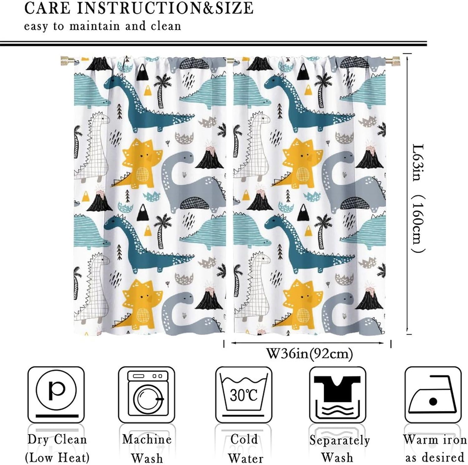 Kids Dinosaur Curtains for Boys Girls Bedroom Decor Cartoon Dino Colorful Cute Funny Wildlife Animal Printed Blackout Rod Pocket Window Drapes for Baby Nursery Playroom Living Room W36xL63in 2 Panels