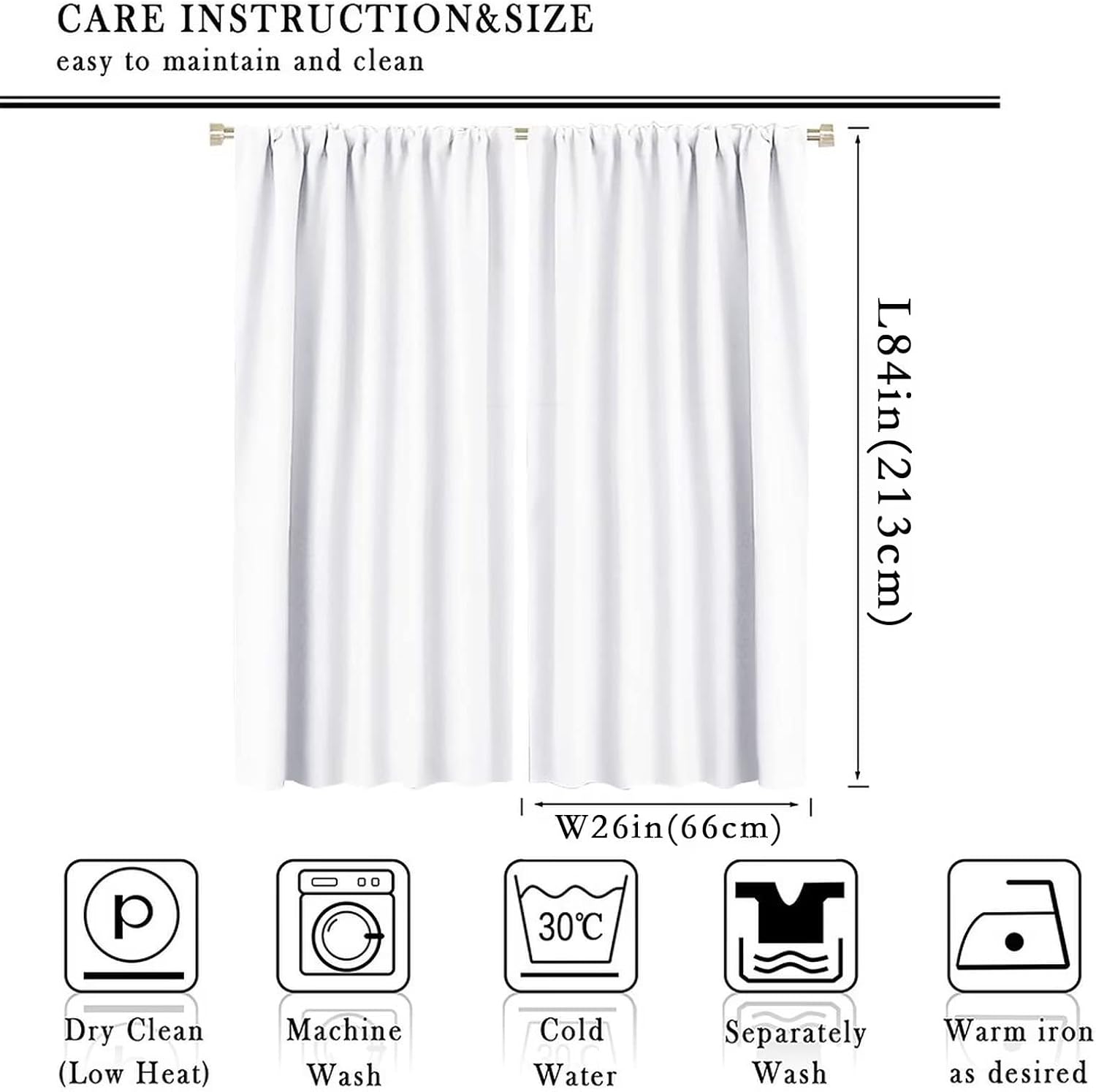 - 【Size】The package includes 2 blackout window curtain panels. The size of a single curtain is 26" (W) x 84" (L),and the overall size is 52" (W) x 84" (L).The panels have a 3" rod pocket suitable for standard curtain or decorative rod.
