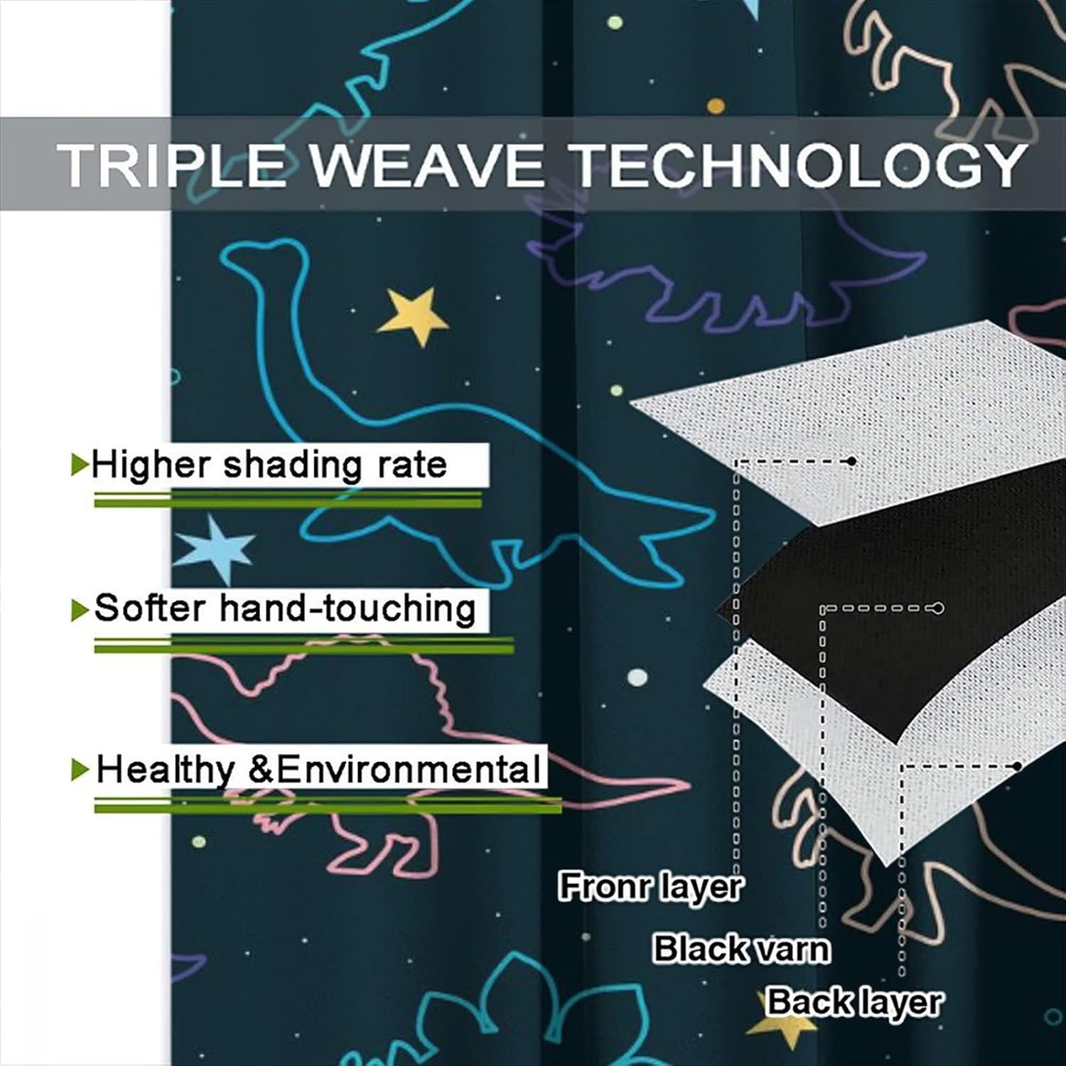 Cartoon Colorful Dinosaur Curtains for Kids Boys Girls Home Decor, Astronaut Funny Outer Space Star Blackout Rod Pocket Window Drapes for Bedroom Living Room W36xL63in 2 Panels