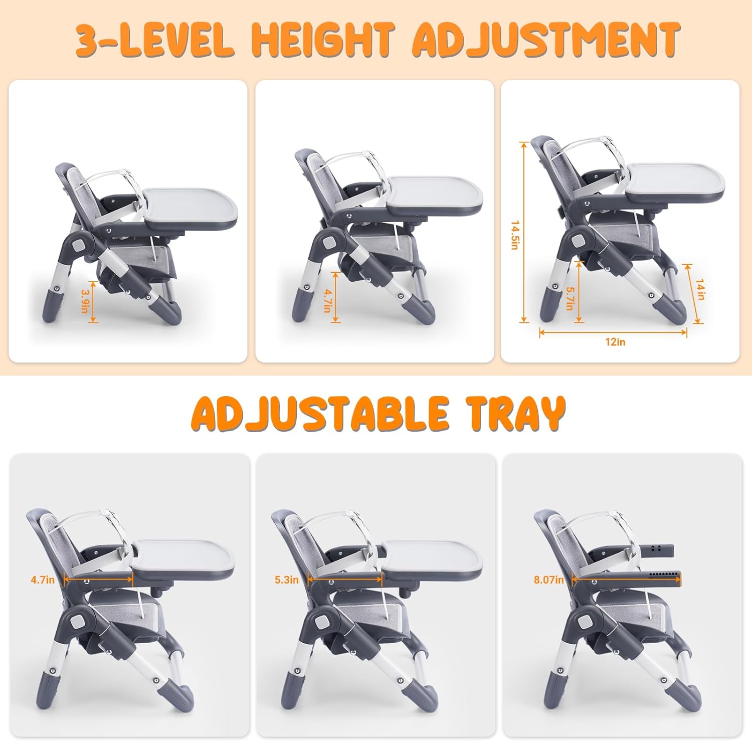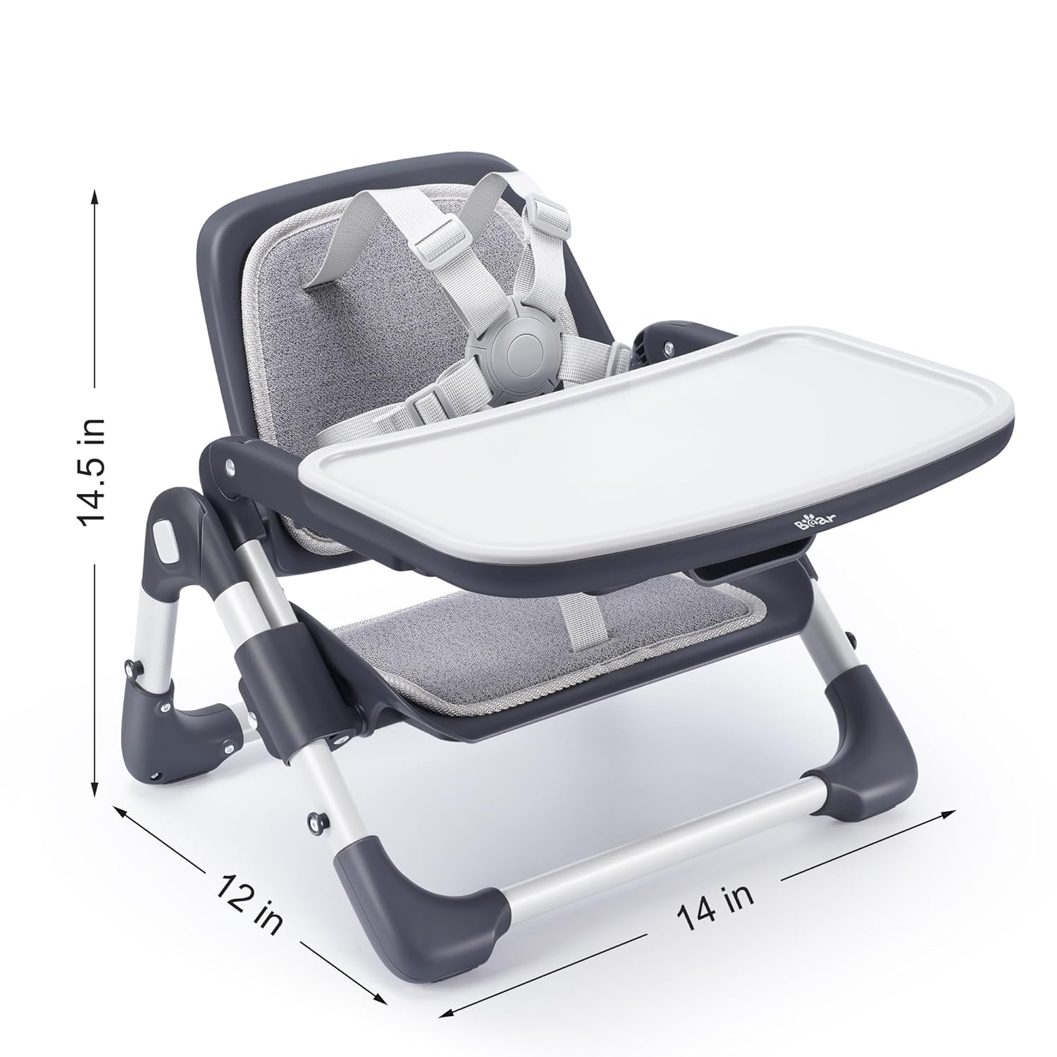 - Versatile 2-in-1 Design: This booster seat serves as both a baby feeding chair with a removable tray and a toddler booster seat for the dining table. Equipped with adjustable anchoring straps, it securely attaches to adult chairs, ideal for babies 6-12 months to sit up and supports children up to 36 months or 44 lbs. Compact dimensions (14 x 12 x 14.5 inches) ensure a perfect fit